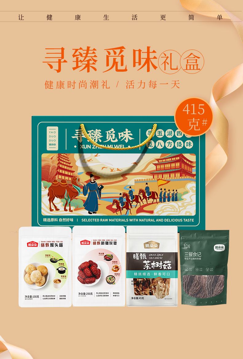 姚朵朵茶树菇45克 姚朵朵羊肚菌20克 姚朵朵猴头菇100克 姚朵朵新疆灰枣250克 包装盒-寻臻觅味
