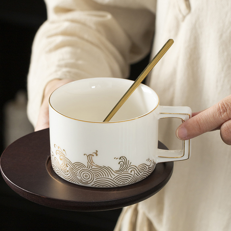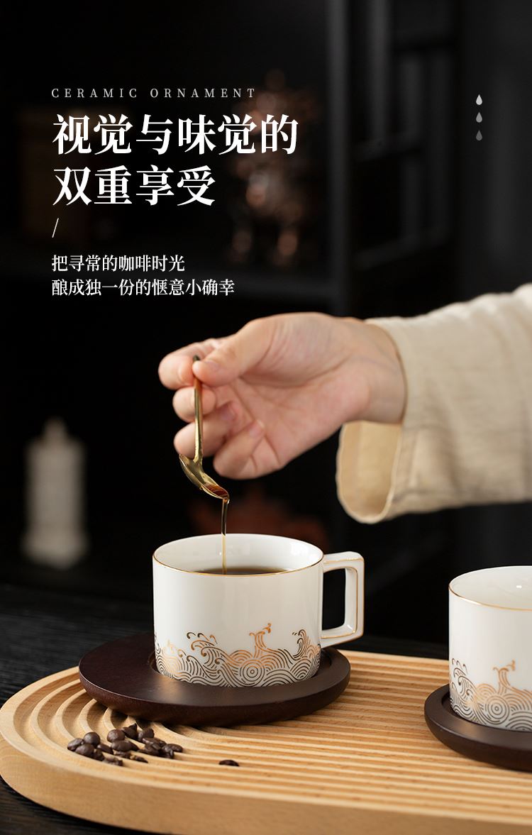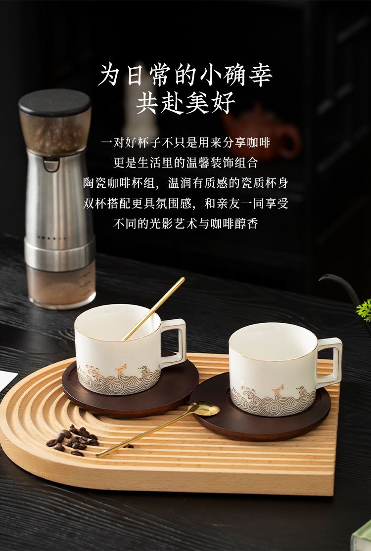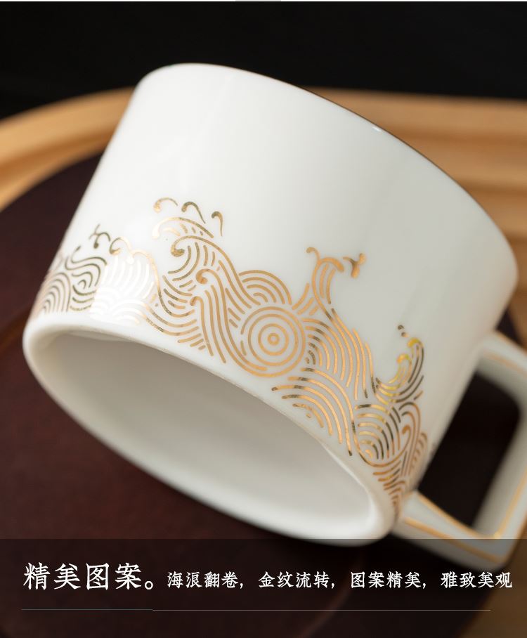 云博陶瓷羊脂玉瓷金色海浪咖啡杯对杯描金水杯现代风都市休闲