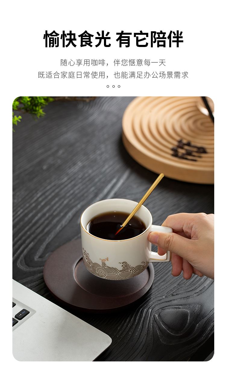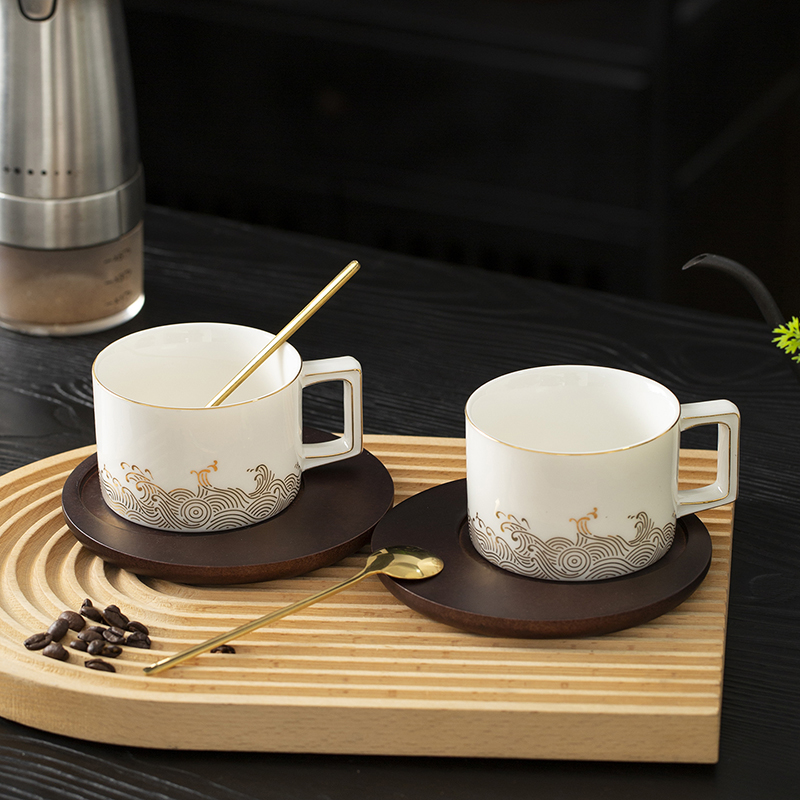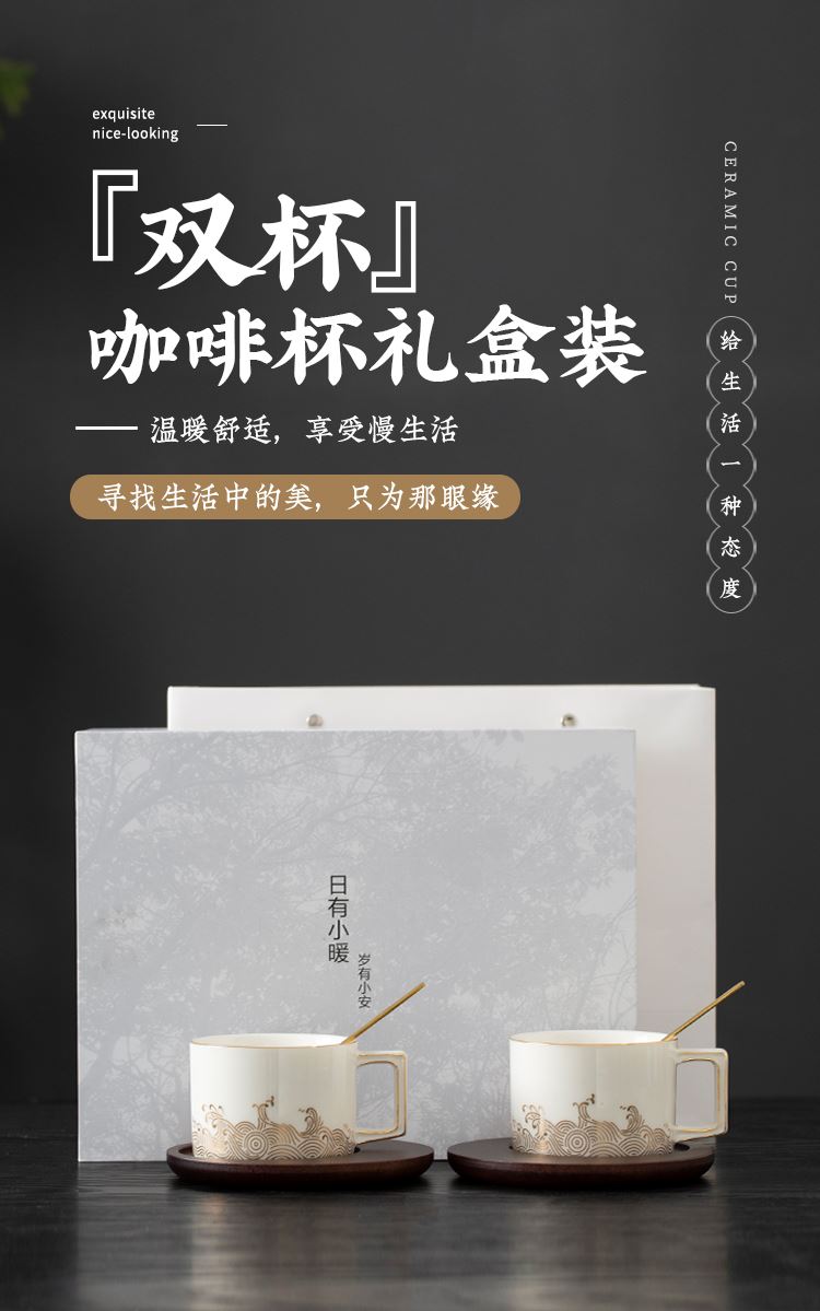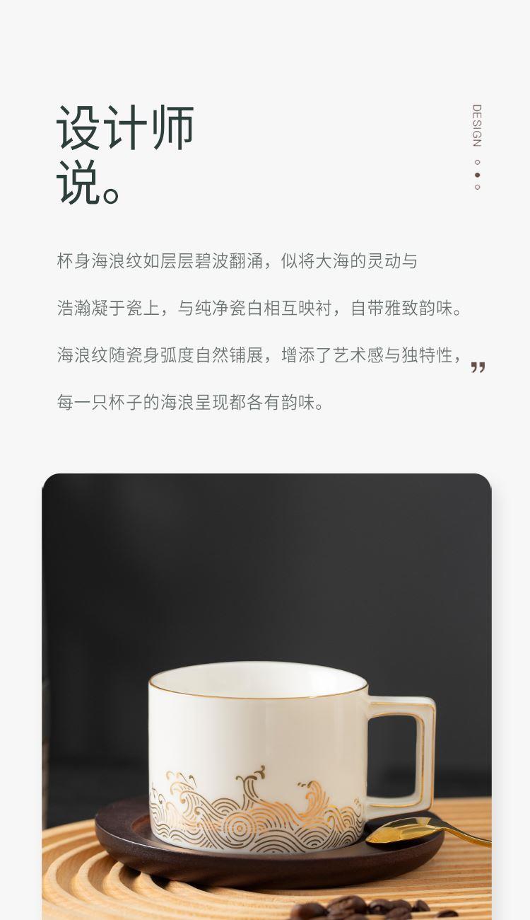 云博陶瓷羊脂玉瓷金色海浪咖啡杯对杯描金水杯现代风都市休闲