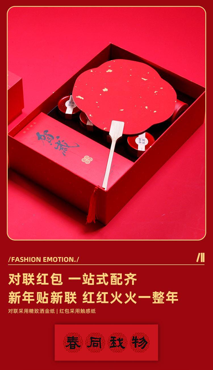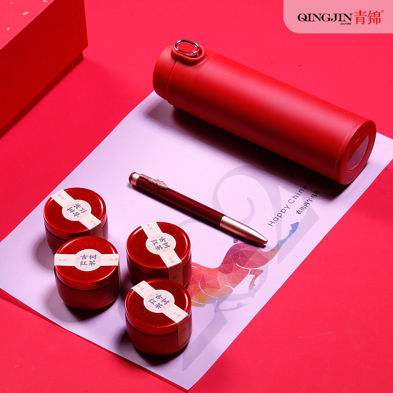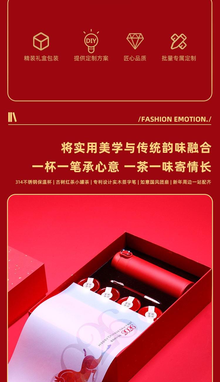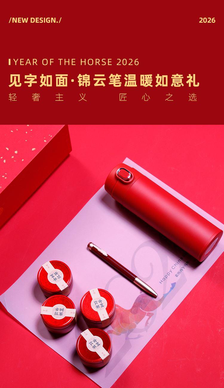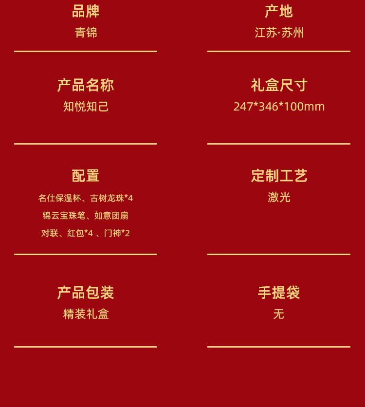 名仕保温杯*1古树龙珠*4 锦云宝珠笔*1 如意团扇 对联*1-红包*4 门神*2 精装礼盒手提袋*1