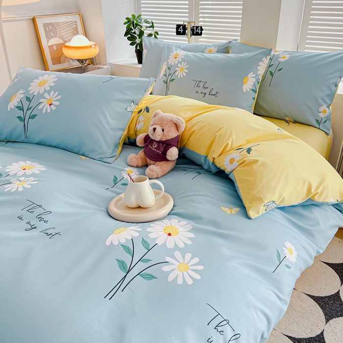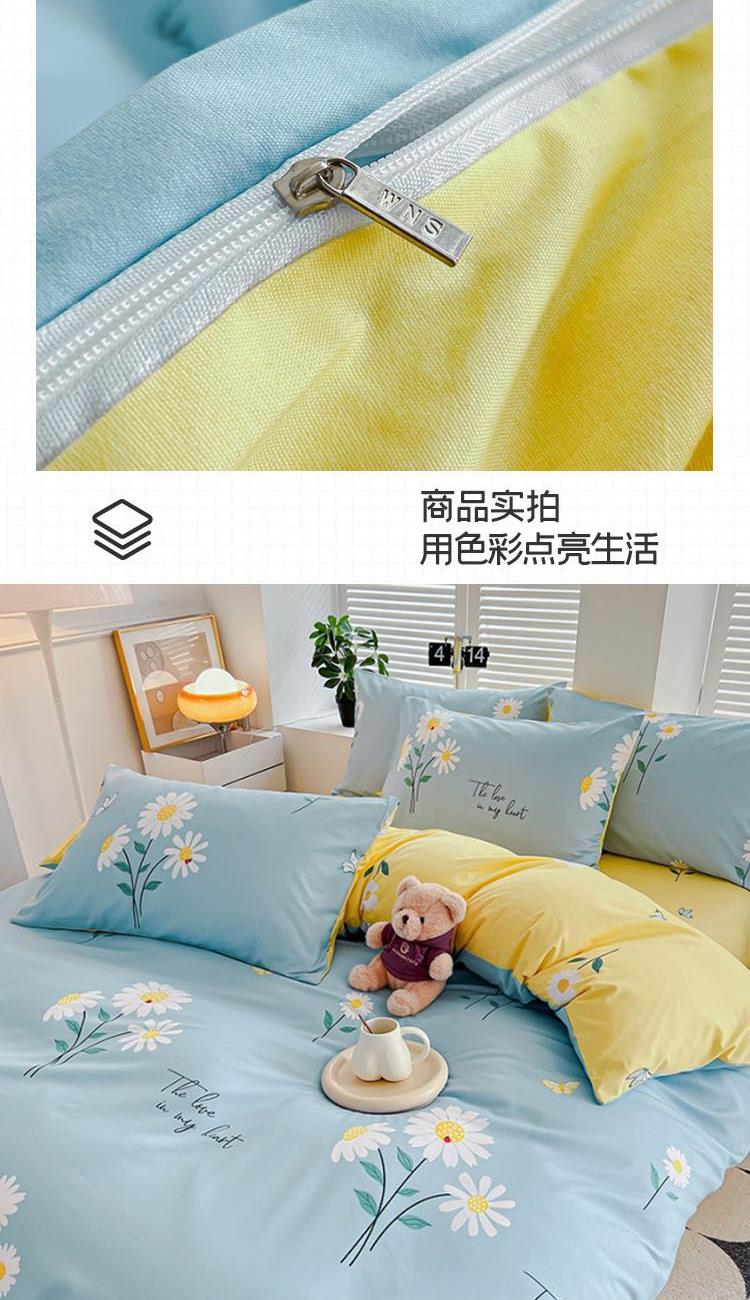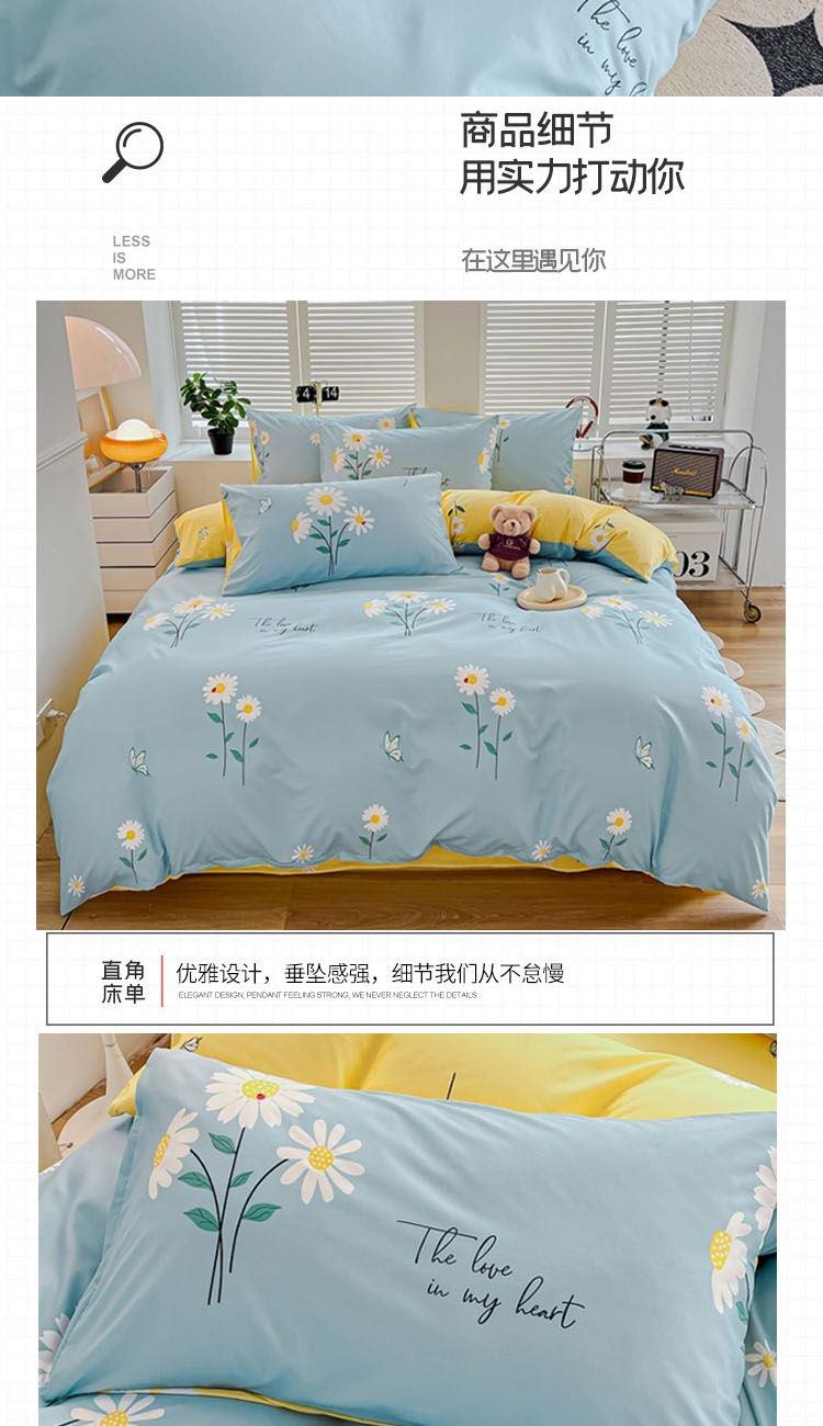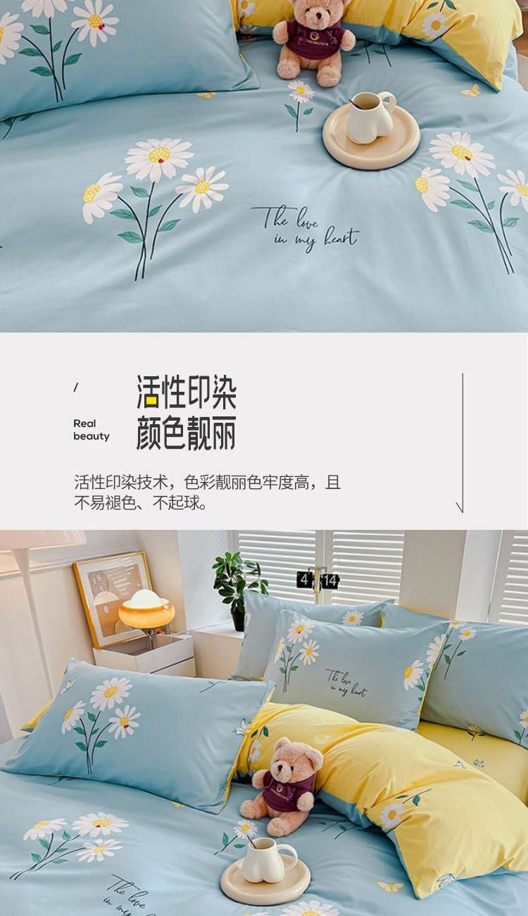 型号:SM-263A 花色:花语蓝 面料:聚酯纤维 被套:200*230cm 床单:230*250cm 枕套:48*74cm*2 外箱尺寸:520*370*900mm 采用活性磨毛印花,洗后不易脱色不变形、不起球。依然如新,绿色无污染,手感细腻柔软,经纬密度均匀,面料厚实不起球。