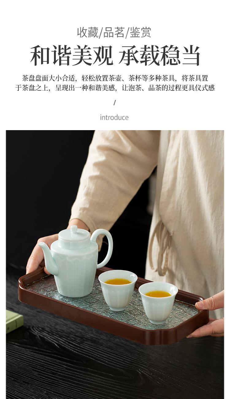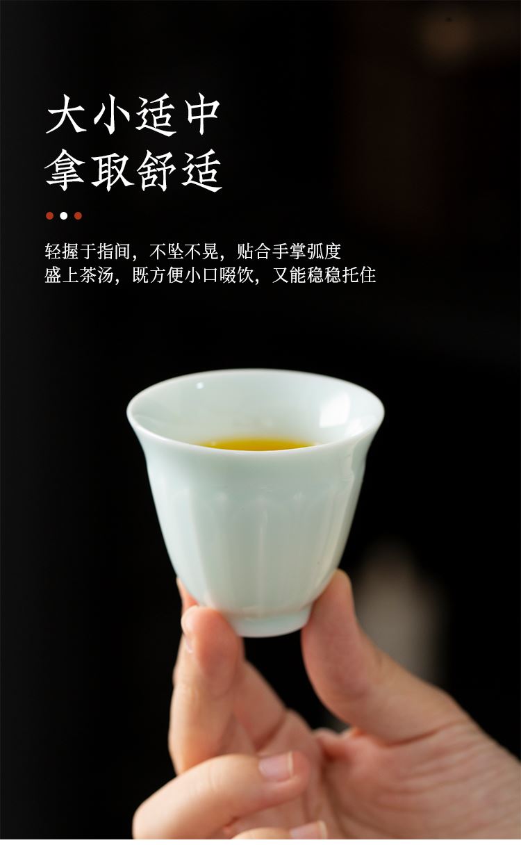 配置:高壶*1 品茗杯*6 茶海*1 玻璃茶盘*1 皮包*1 材质:影青瓷 礼盒尺寸:34.2cm*13.2cm*19.5cm 产品尺寸:品茗杯 60ml 盖碗 200ml 壶 250ml 茶海 230ml