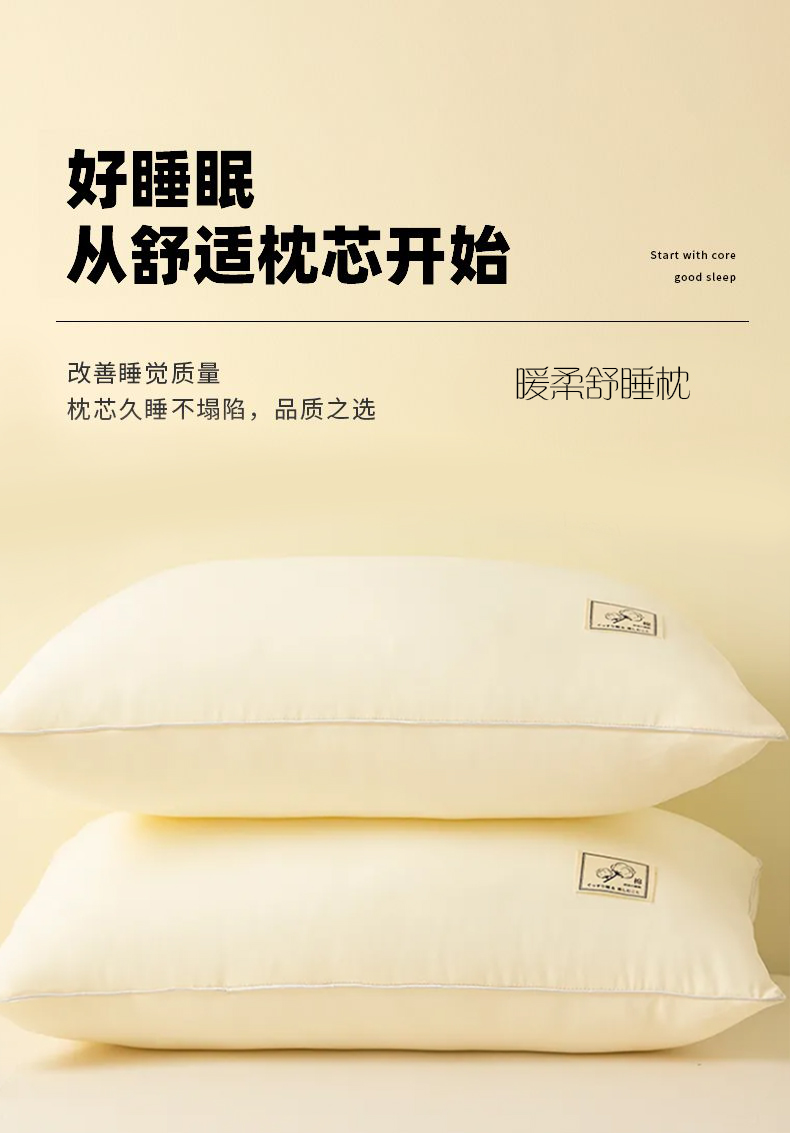 规格:48*74cm 面料:暖柔棉 填充:3D螺旋纤维 执行标准:GB/T22796-2021 安全类别:GB18401-2010 B类 1.A类无荧光面料,不采用化学漂染,更天然,更健康; 2.无荧光剂,无芳香胺,无甲醛,更安全的睡眠 3.面料表面采用暖柔棉处理,手感更柔软,给您的肌肤毛绒绒的触感,更贴心; 4.填充采用3D螺旋纤维。回弹好,长期使用不变形,不结团