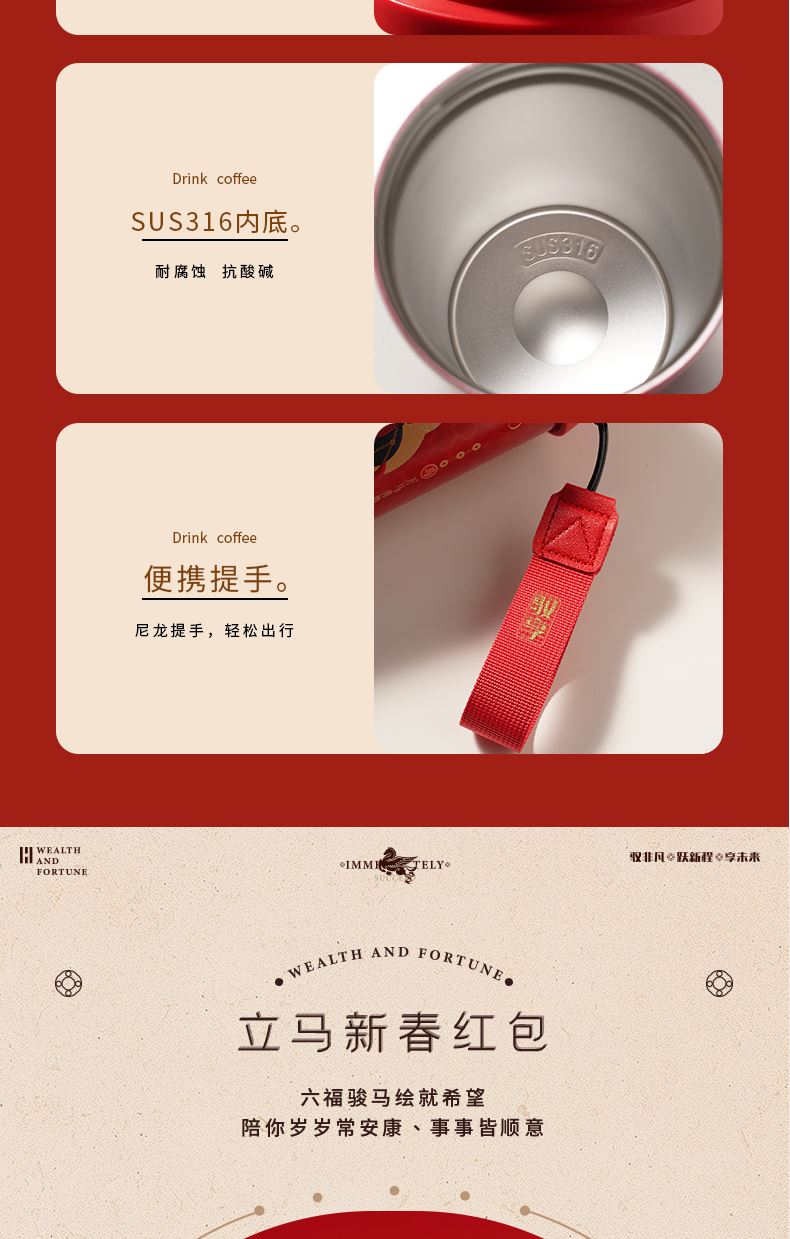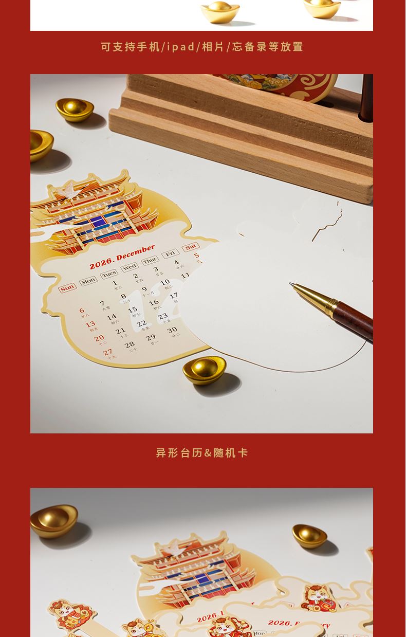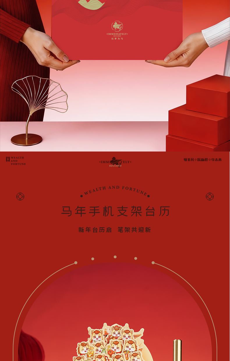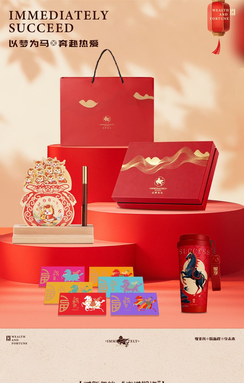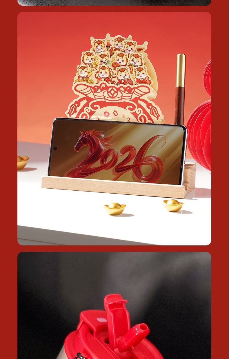 1、多功能日历摆件:底坐榉木,手机加平板电脑支架功能、笔插功能、留言板功能 2、红色咖啡杯:500ML 316不锈钢 3、红木签字笔:书写新年 新篇章 4、新年红包*6:开启新年好运程