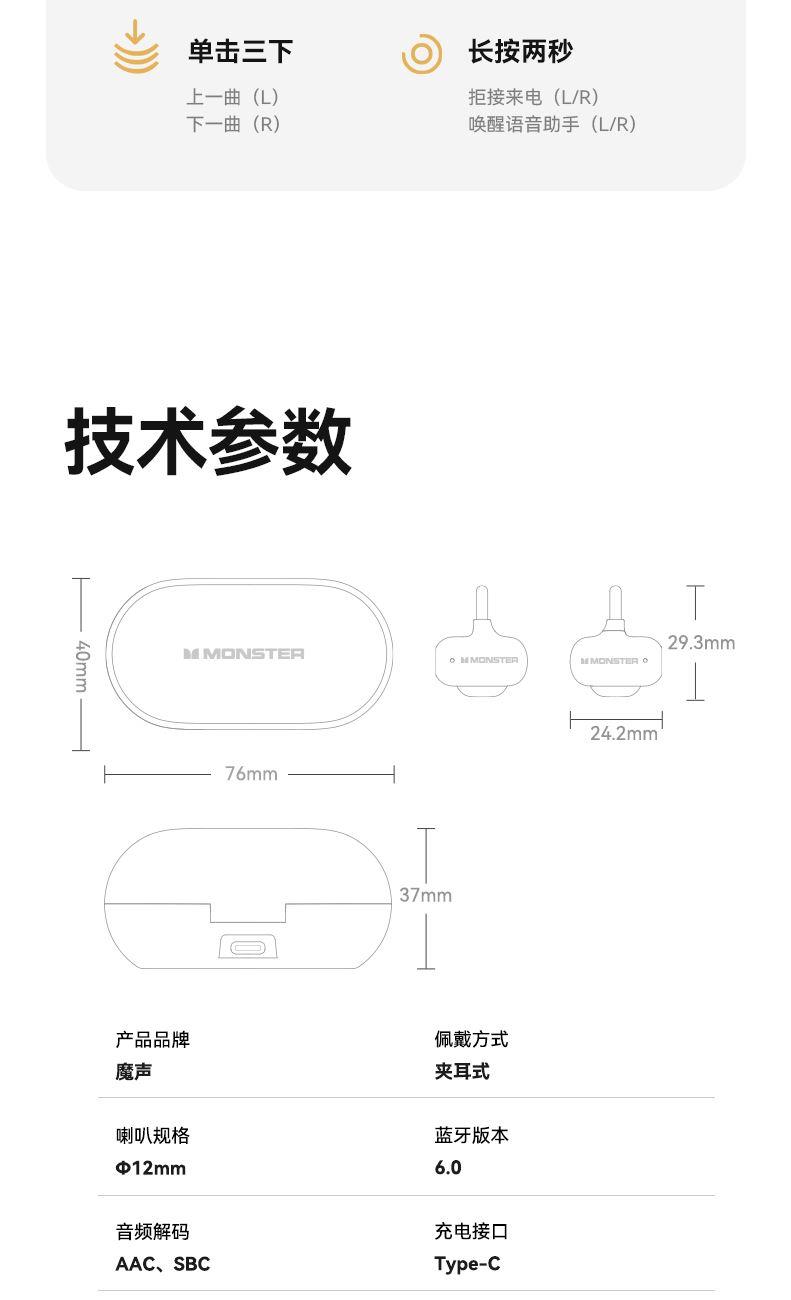 魔声OpenEarAC223蓝牙耳机耳夹式MH22244