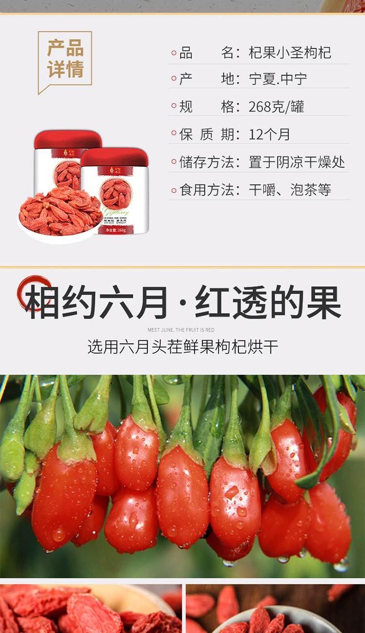 杞果小圣宁夏中宁特级红枸杞268G/罐