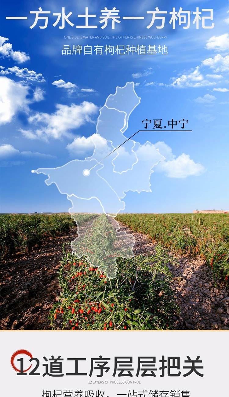 【 配 料 】 采用优质中宁枸杞 【等 级】 特优级 【 产 地 】 宁夏·中宁 【 保 质 期 】 18个月 【 规 格 】 30袋*10克 道地宁夏中宁枸杞,《本草纲目》记载"全国入药杞子,皆宁产也"!