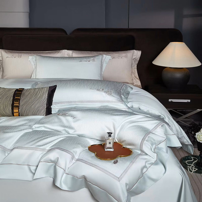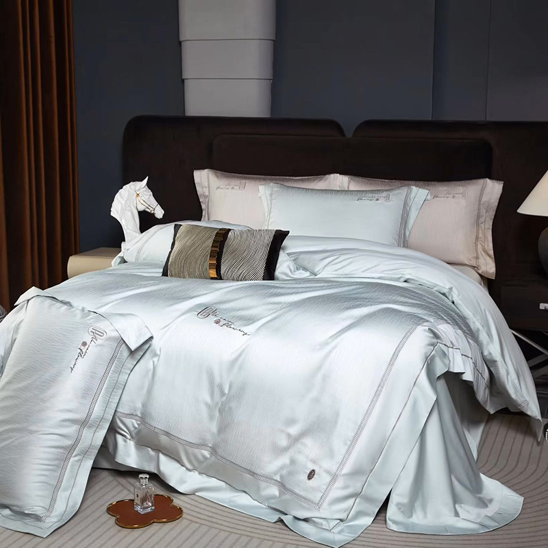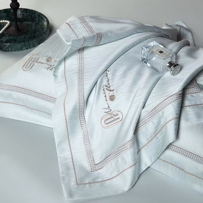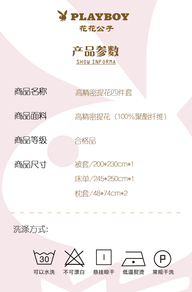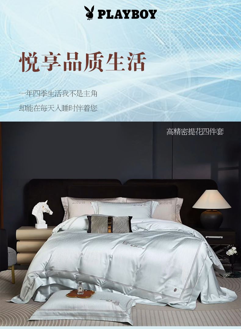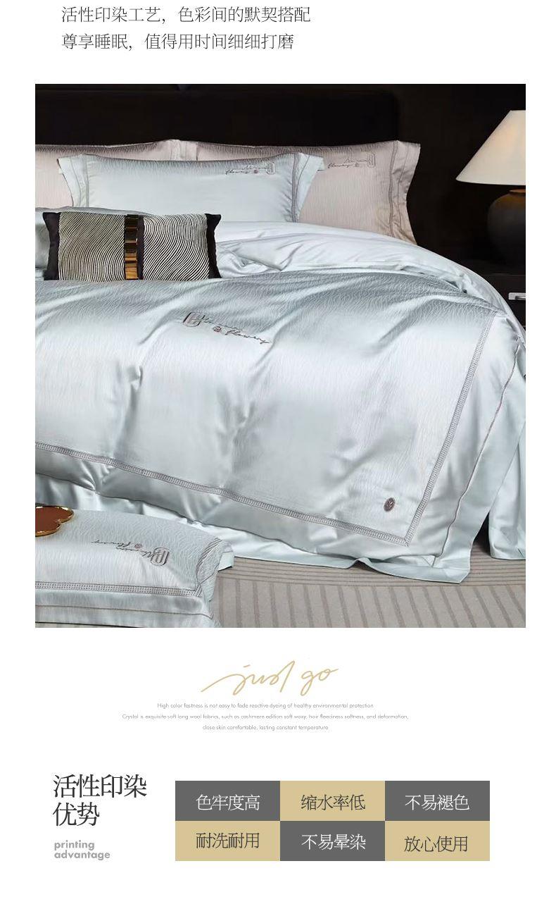 被套:200*230cm 床单:245*250cm 枕套:48*74cm*2 面料:高精密提花(聚酯纤维) 执行标准:GB/T22796-2021 安全类别:GB18401-2010 B类 天丝是自然界的绿色纤维,是从校树中提取木浆为原料,赋予了织物以柔滑的触感和美妙的光泽,丝滑柔滑的全新享受。 从木材中萃取出来织成的纺品轻薄透气,柔滑垂顺,被誉为“会呼吸的面料