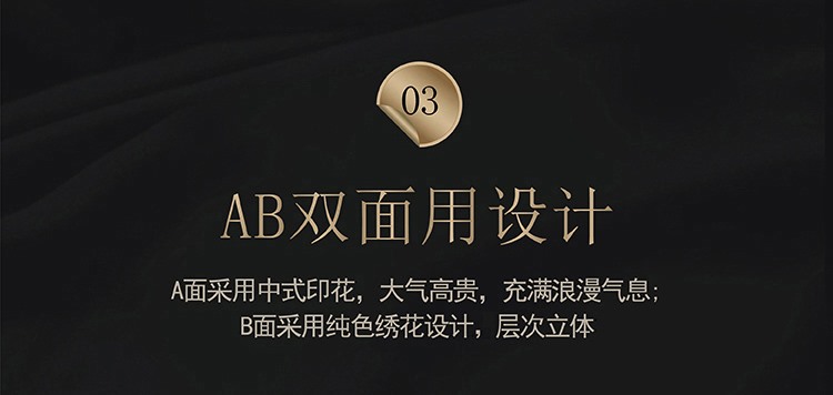 床单:245x250cm 被套:200x230cm 枕套:48x74cm 【面 料】新疆长绒棉 A版:100支长绒棉印花 B版:80支长绒棉绣花 产品特点: 1.面料选用优质长绒棉,触感丝滑,亲肤舒适; 2.AB双面用设计,A面采用100支长绒棉中式印花,高贵大气;B面采用80支长绒棉纯色绣花设计,层次立体; 3.活性印染工艺,色彩绚丽,色牢度高,久洗如新; 4.静谧的色彩、精致的工艺细节,展现典雅气质,为居家生活增添雍容雅致