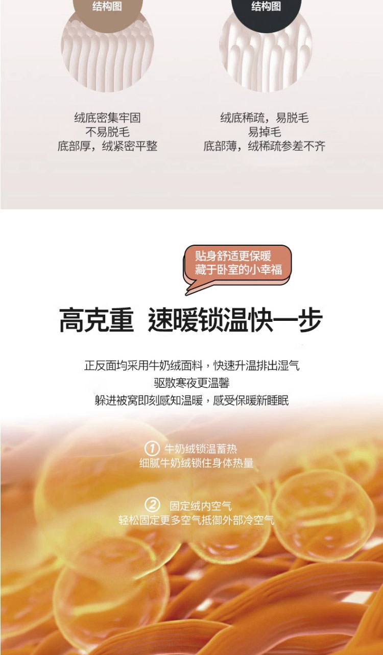 1:唤醒冬日诠释温暖睡眠 牛奶绒四件套系列 2:牛奶绒面料 表面有一层丰满细洁的绒毛覆盖,不漏织纹手感柔软平整,具有舒适的触感以及很好的保暖效果 3:活性印染工艺,色牢度高,不易褪色 绑带设计防止被芯乱跑 尺寸:被套:200*230cm*1 床单:230*250cm*1 枕套:48*74cm*2 重量:4kg(净重) 包装:礼袋/礼盒