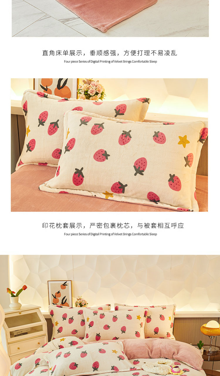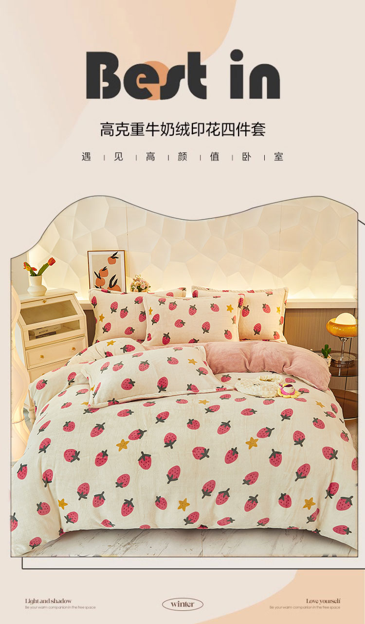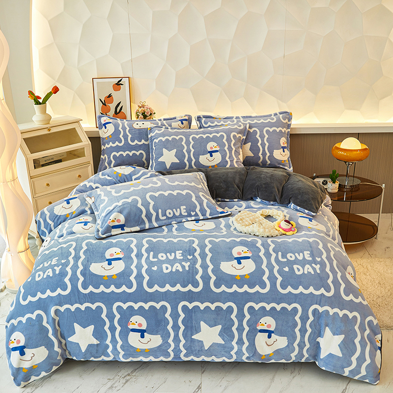 花花公子-家纺-8斤牛奶绒印花保暖冬季御寒四件套