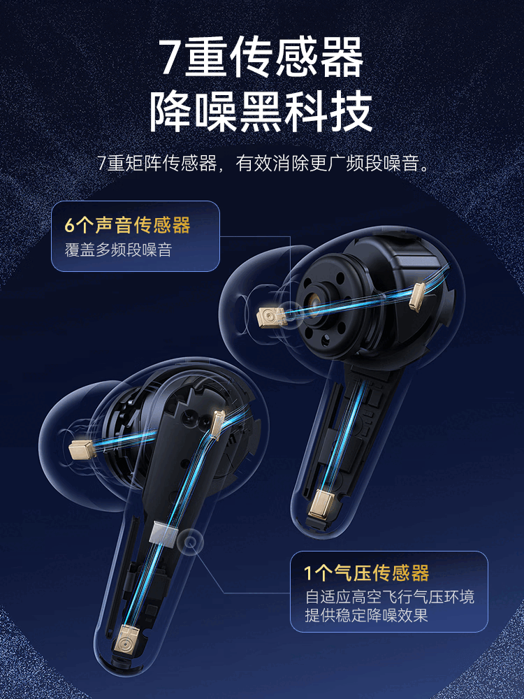1、舒适质感/轻奢磨砂设计 2、灵敏动态降噪/ANC 3.0降噪升级 3、持续监测环境/无损音质 4、ACAA4.0 数字分频/无感不闷耳 5、人体工学无感佩戴/高柔韧性透气耳帽 6、40小时续航/电子屏显