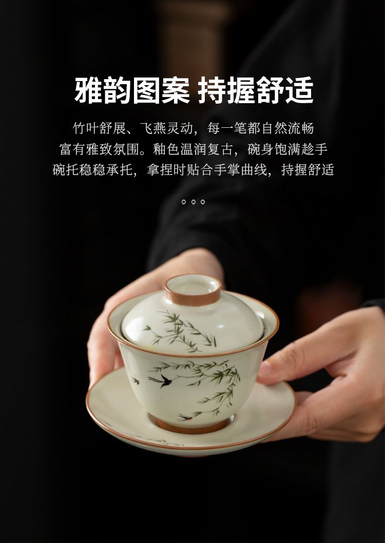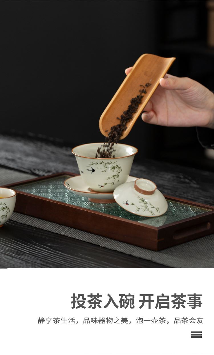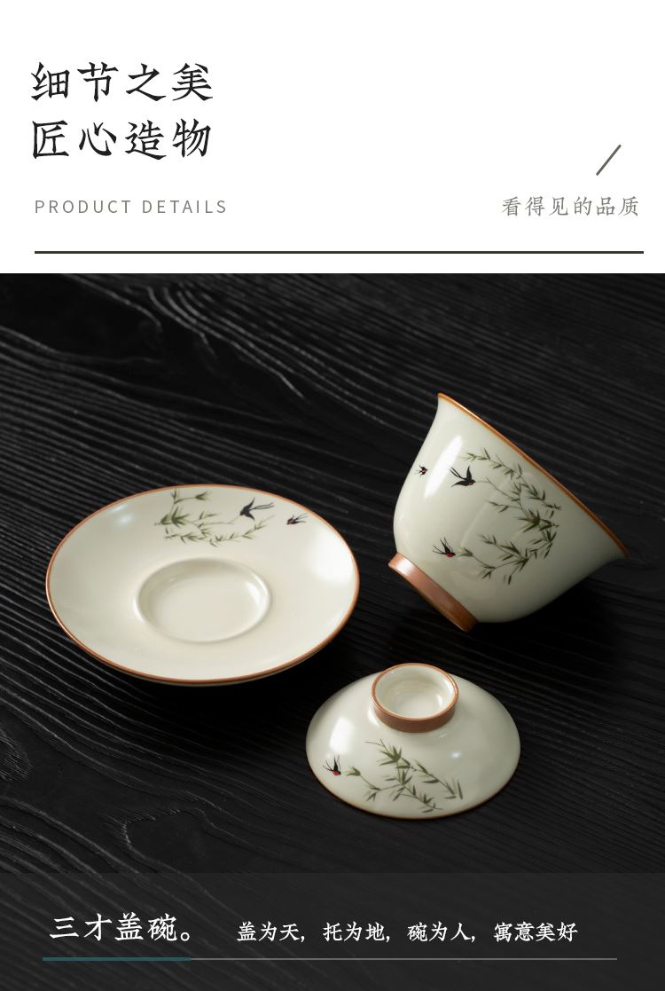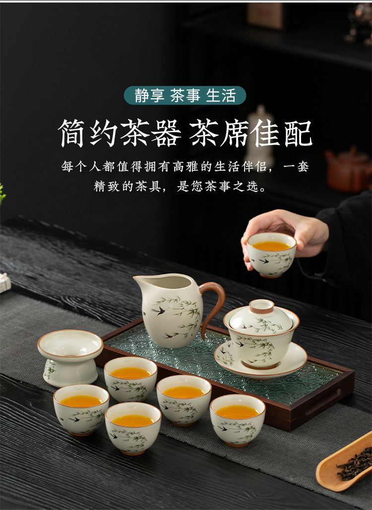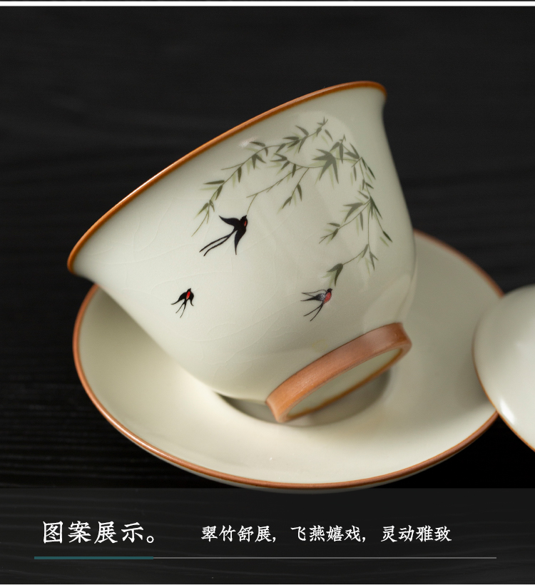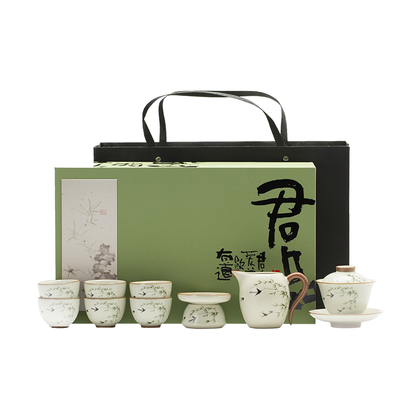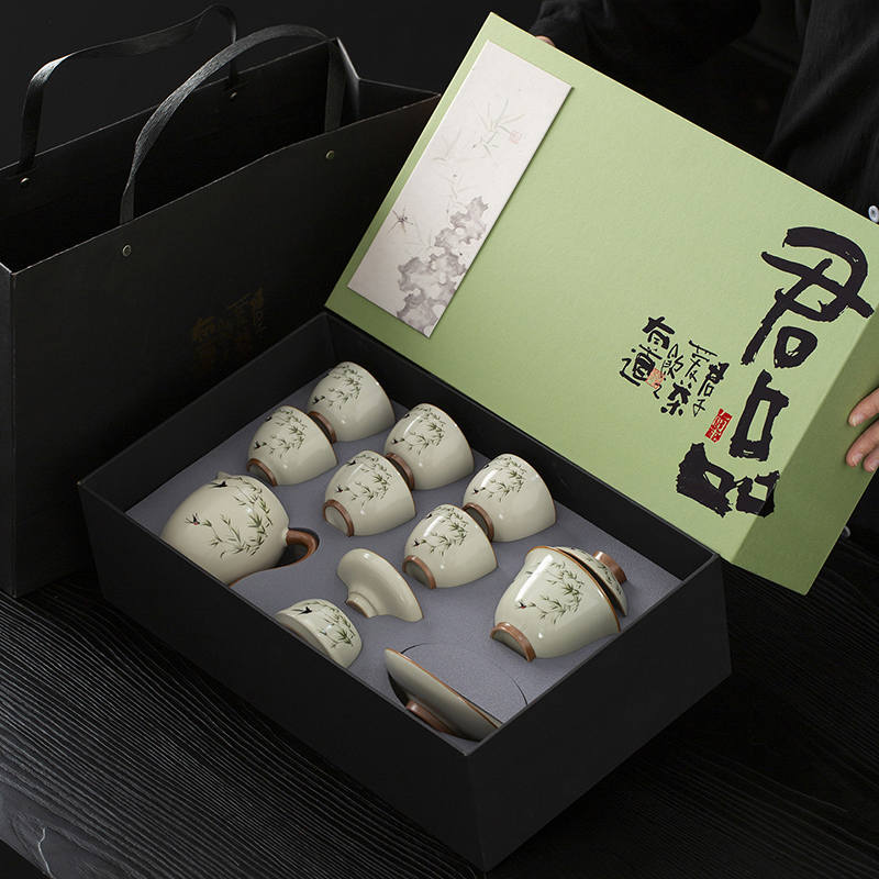 云博陶瓷汝窑燕衍春10头茶具盖碗款套装中国风商务礼品伴手礼
