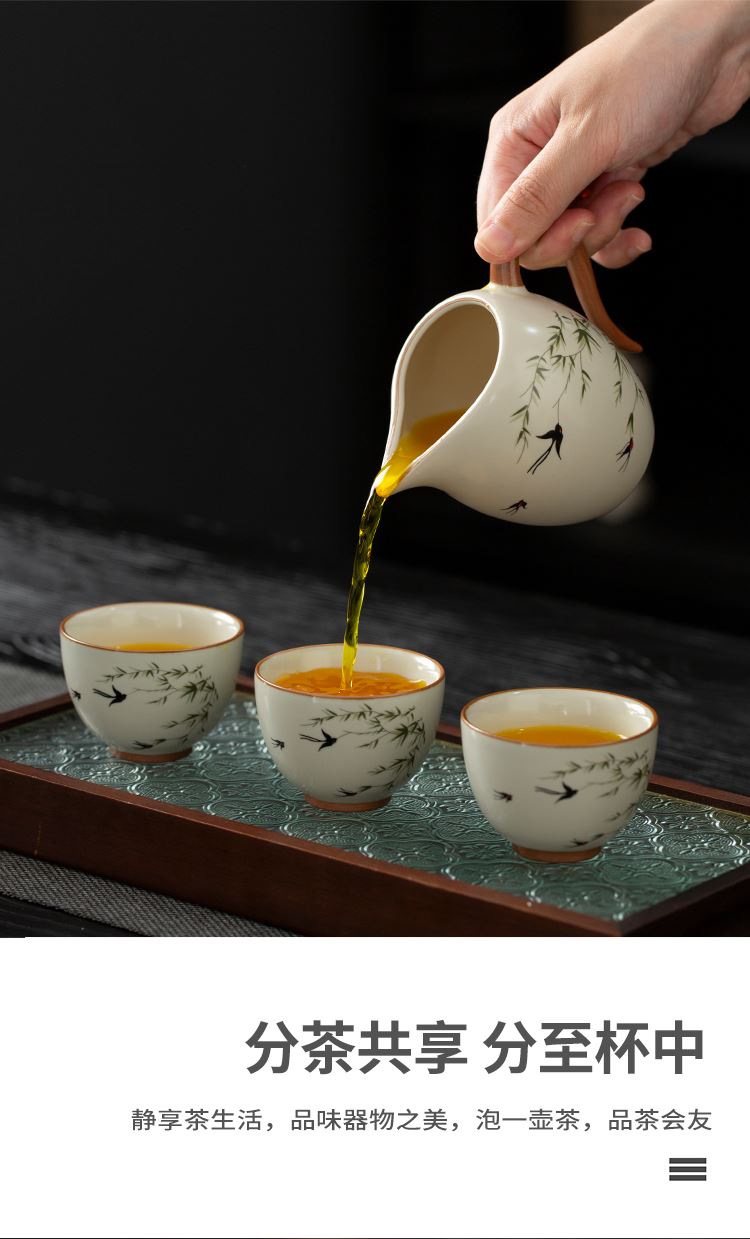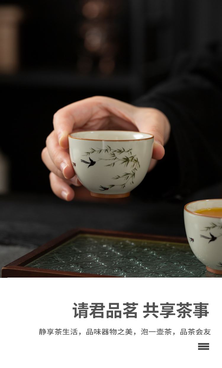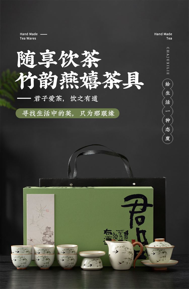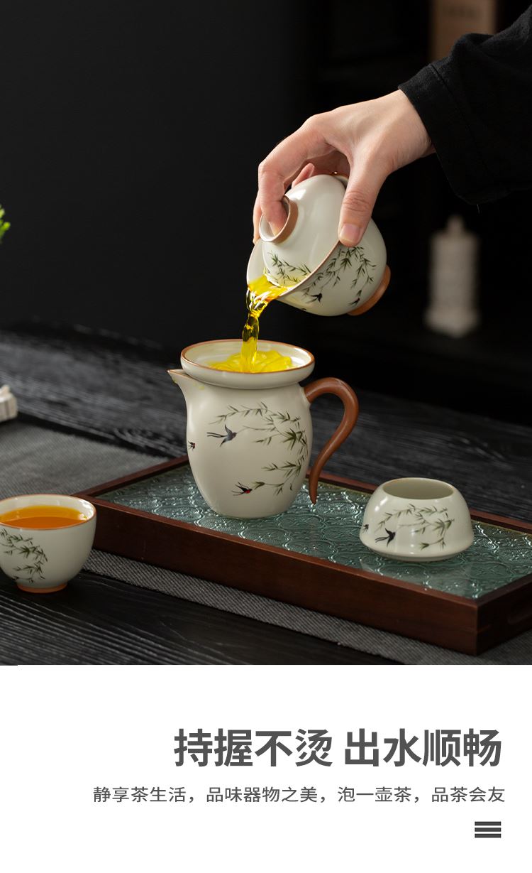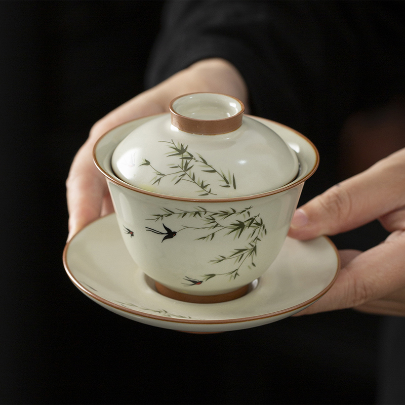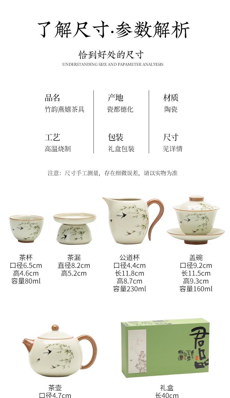 云博陶瓷汝窑燕衍春10头茶具盖碗款套装中国风商务礼品伴手礼
