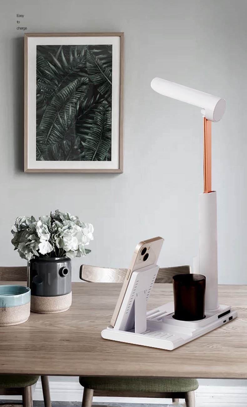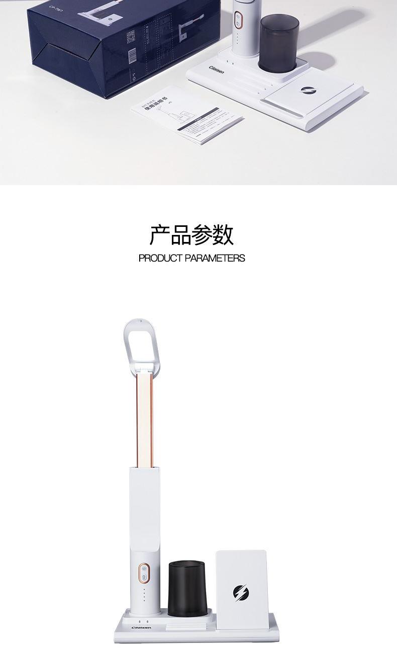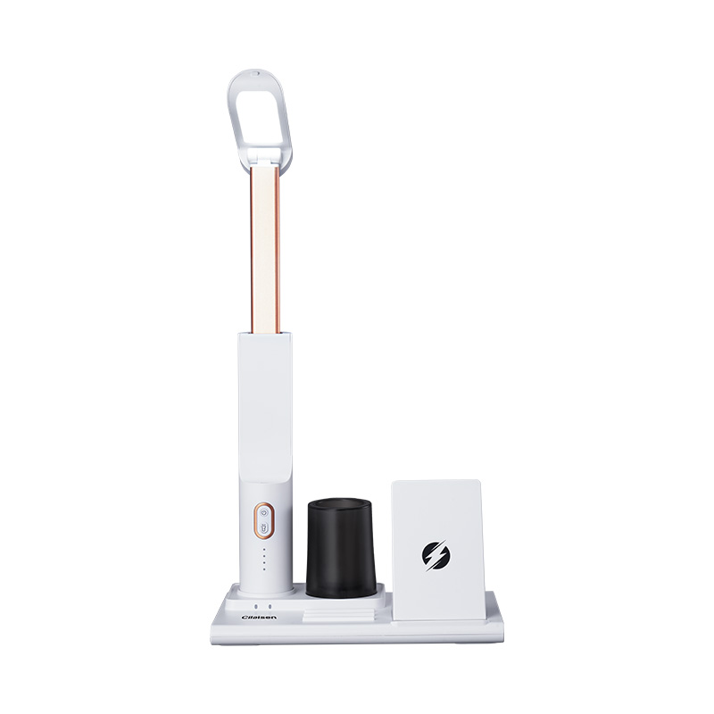 产品参数: 产品型号:CP-TW1 额定电压 : 5V 额定功率:23W 电池容量:1000mAh 商品条码 : 6972831860716 产品毛重 : 605g 产品尺寸:200X130X225mm(折叠尺寸) 彩盒尺寸:235X150X85mm 包装清单:无线充电底座x1、折叠台灯x1、笔筒x1、 充电线x1、说明书x1