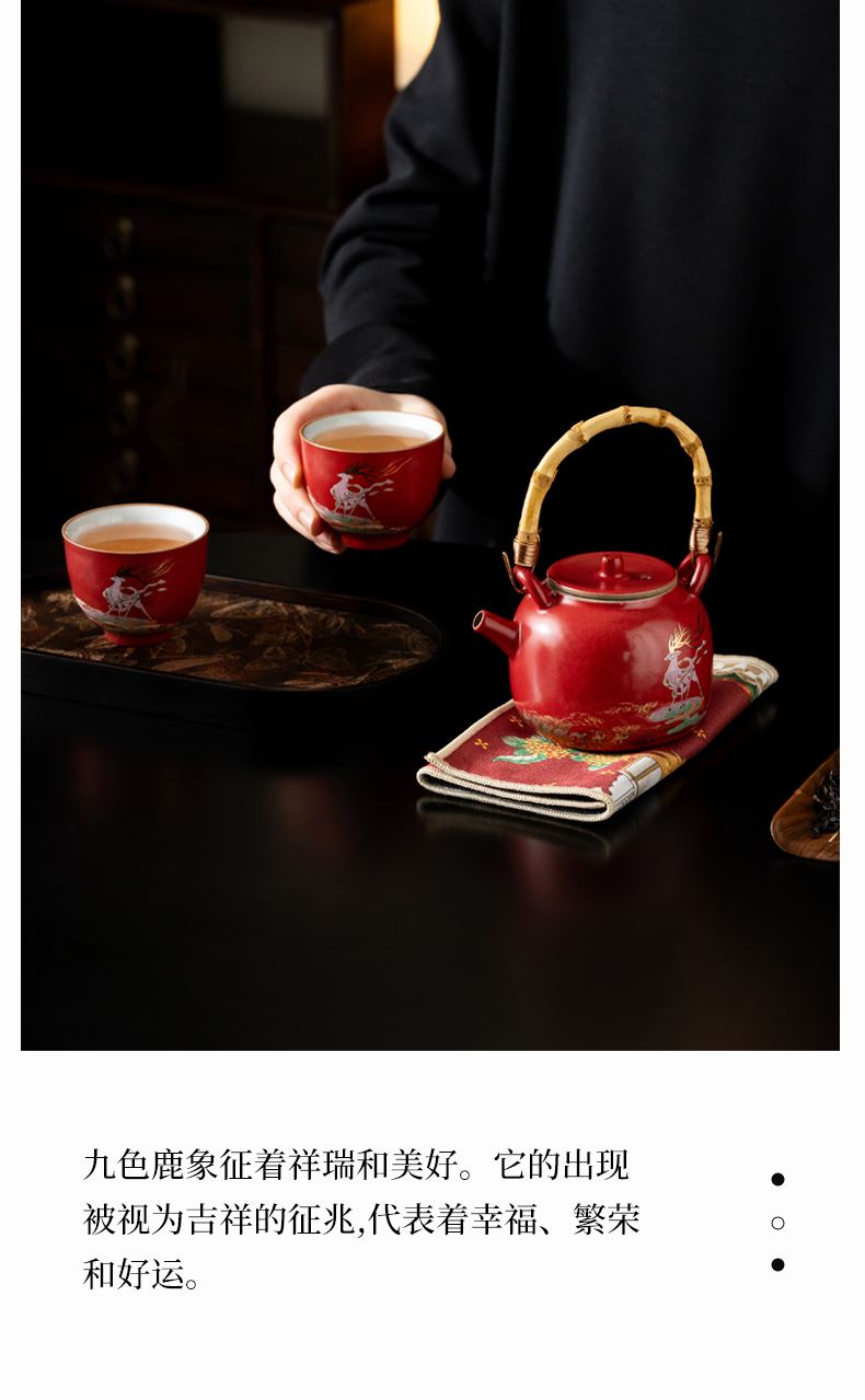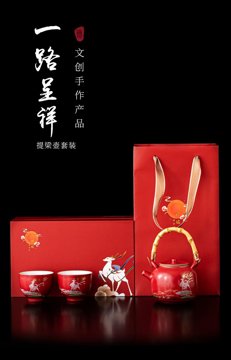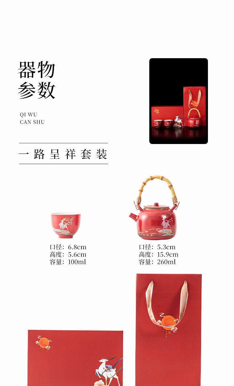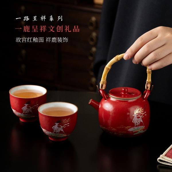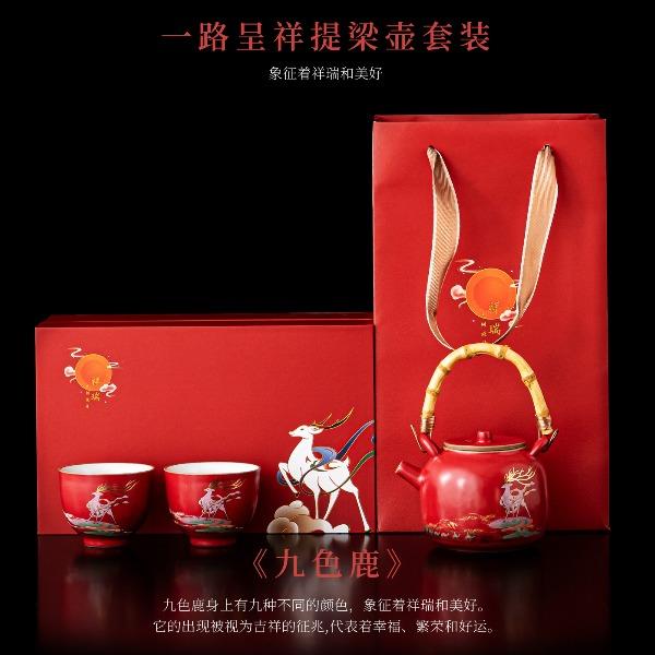 尾桥下窑敦煌文创一鹿呈祥一壶两杯茶具小套装年会开门红伴手礼
