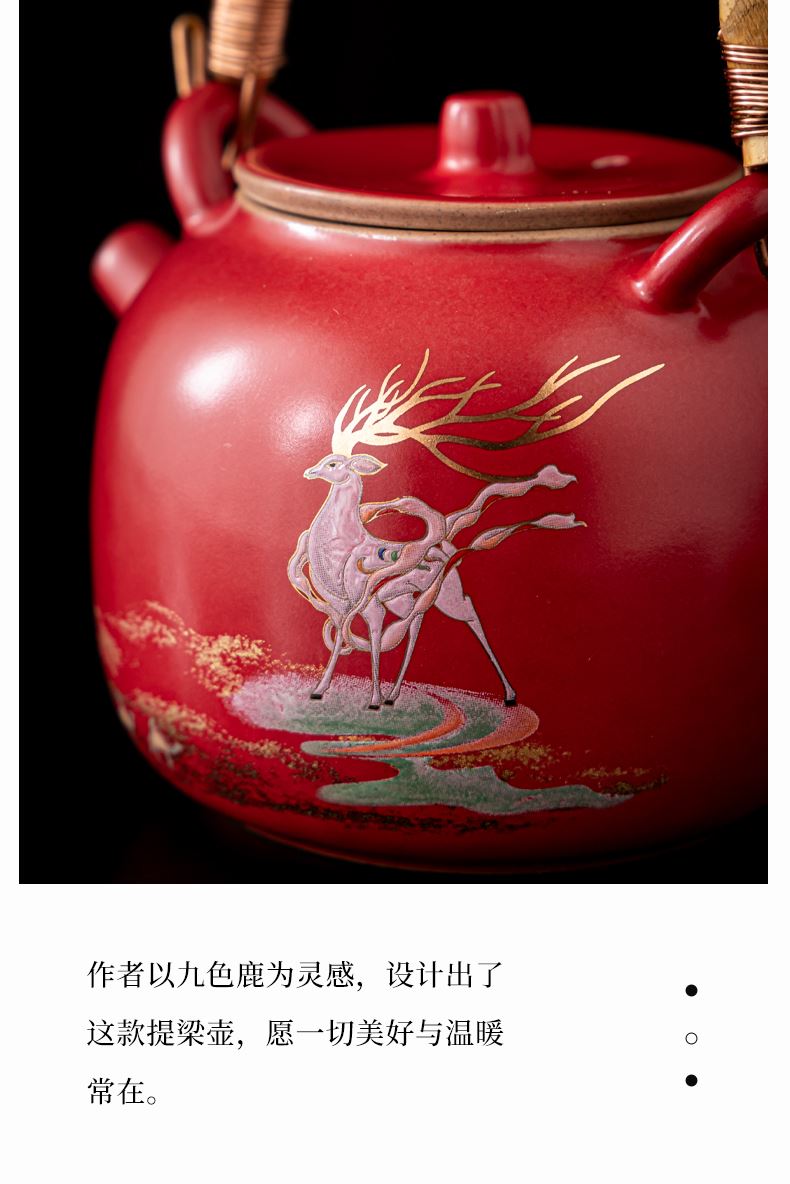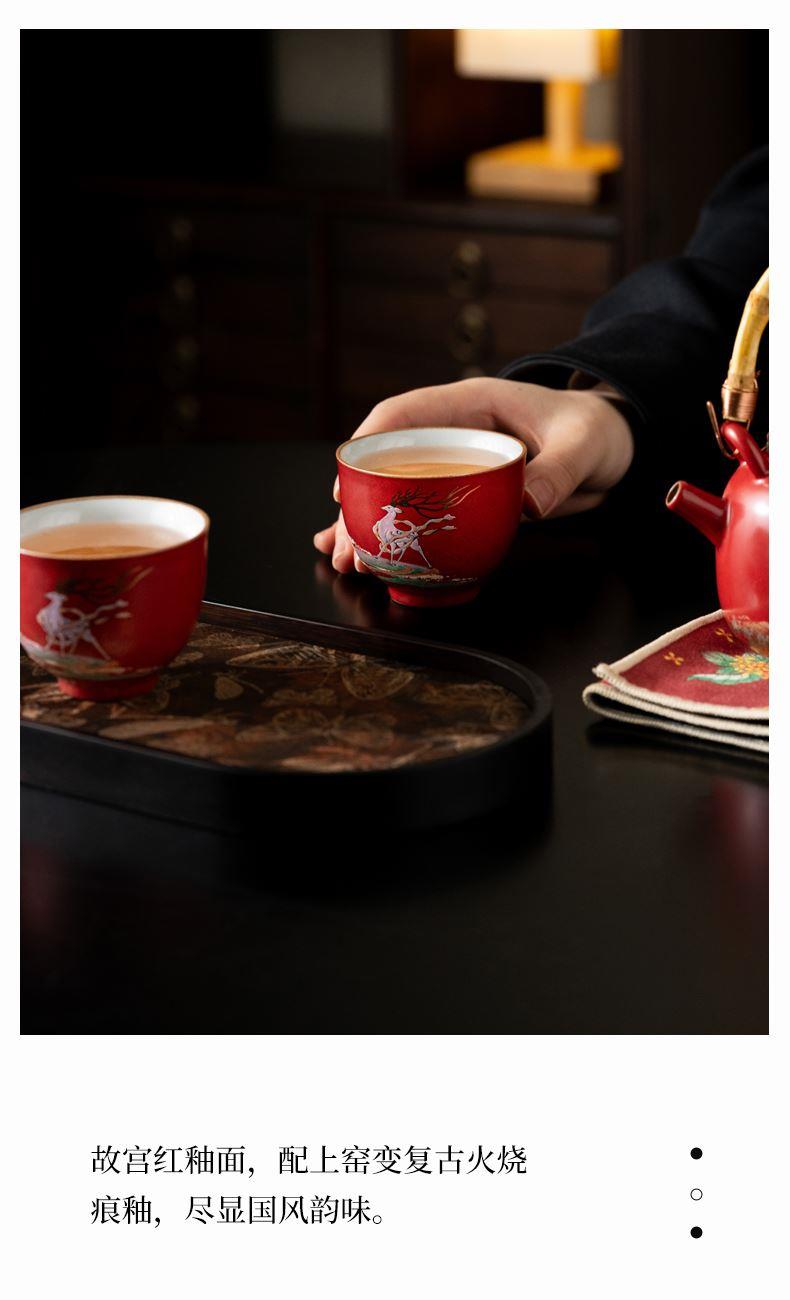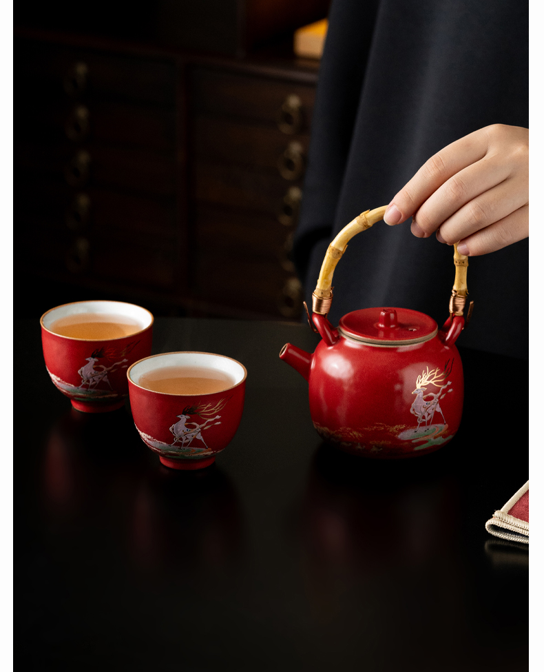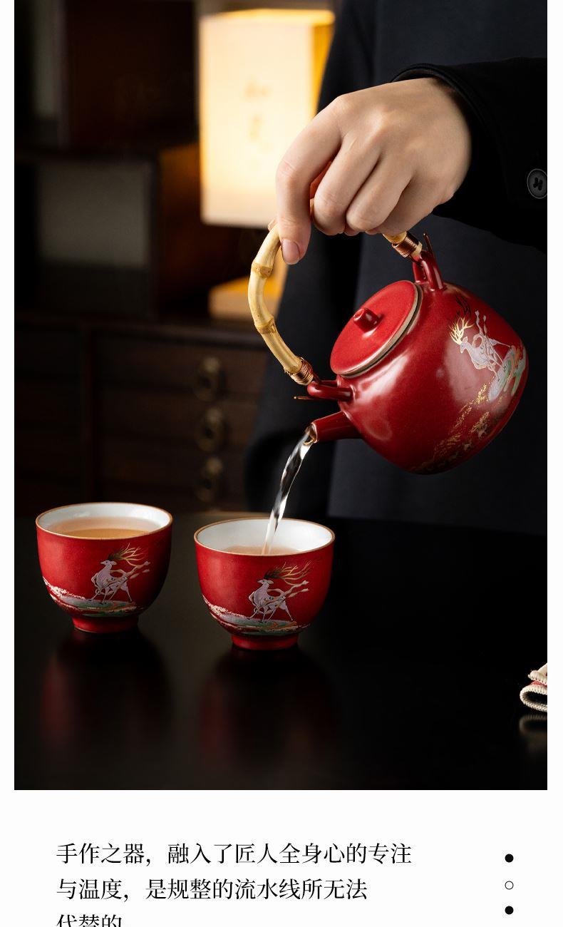 尾桥下窑敦煌文创一鹿呈祥一壶两杯茶具小套装年会开门红伴手礼