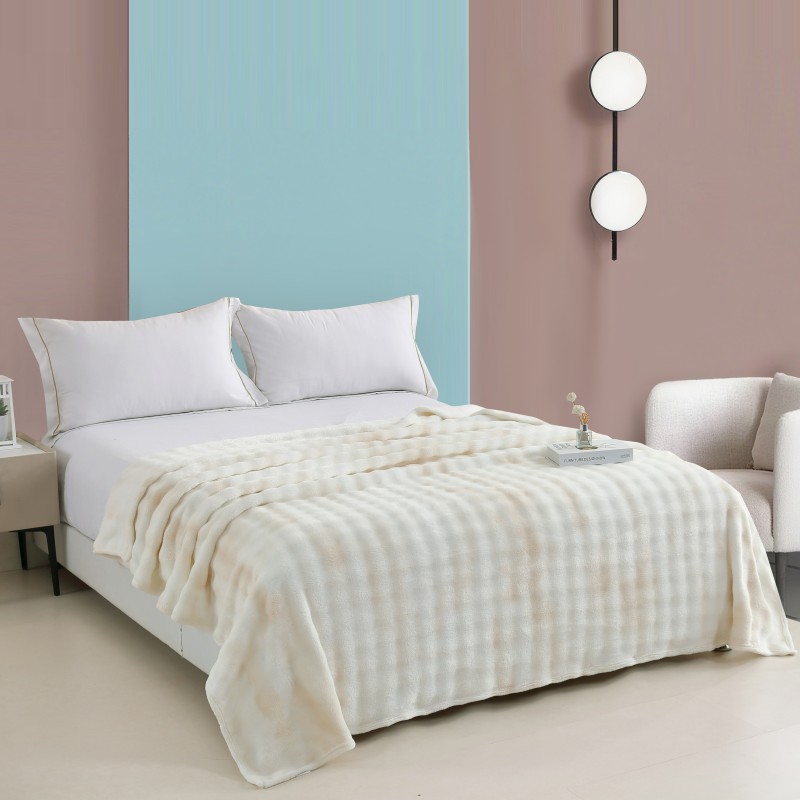 规格:200*230cm 面料:泡泡绒 克重:1400g 执行标准:FZ/T61002-2019 安全类别:GB18401-2010 B类 1.严选泡泡绒面料,手感细腻,亲肤舒适,速热保暖;高克重塔芙绒,透气吸湿,保暖性更好,快速升温;2.内置导电纱,防静电处理,使用更安心;精致的卷工艺,做工精细,针脚细密,不易脱线,牢固耐用。