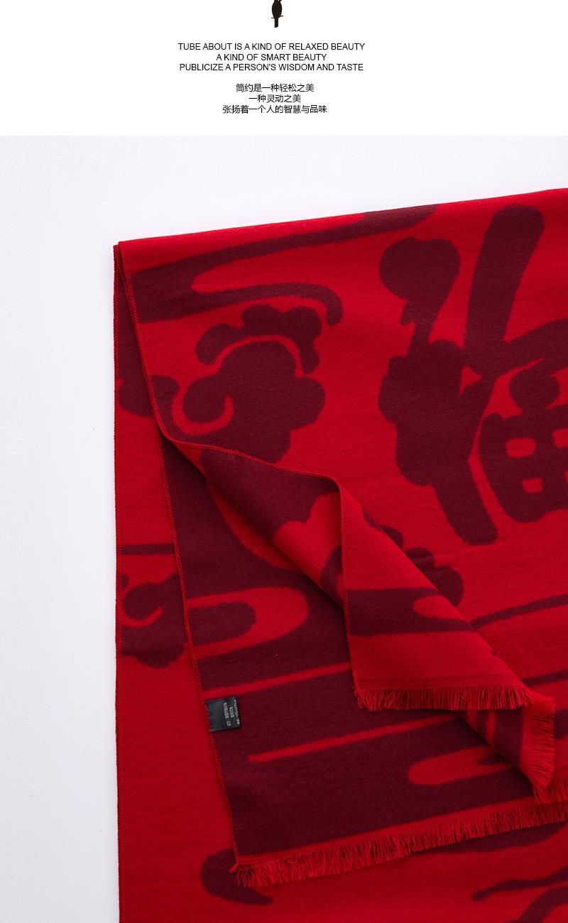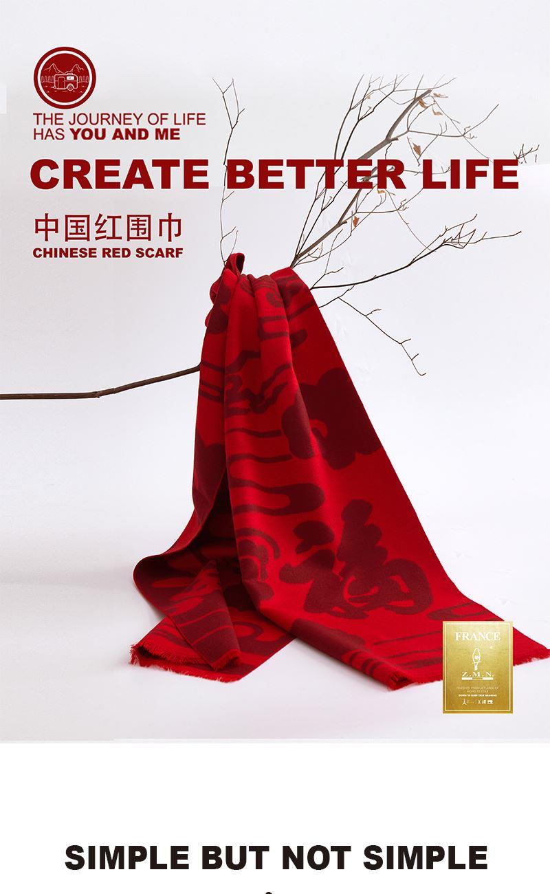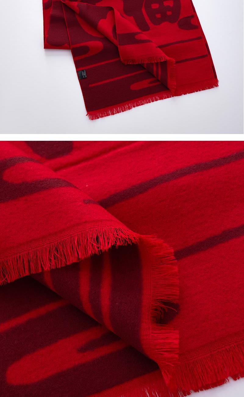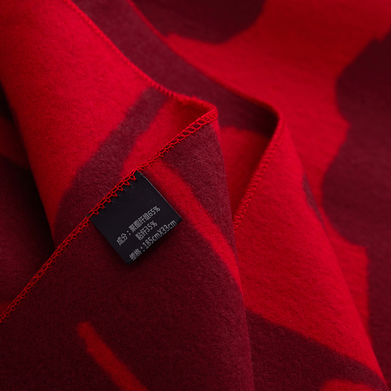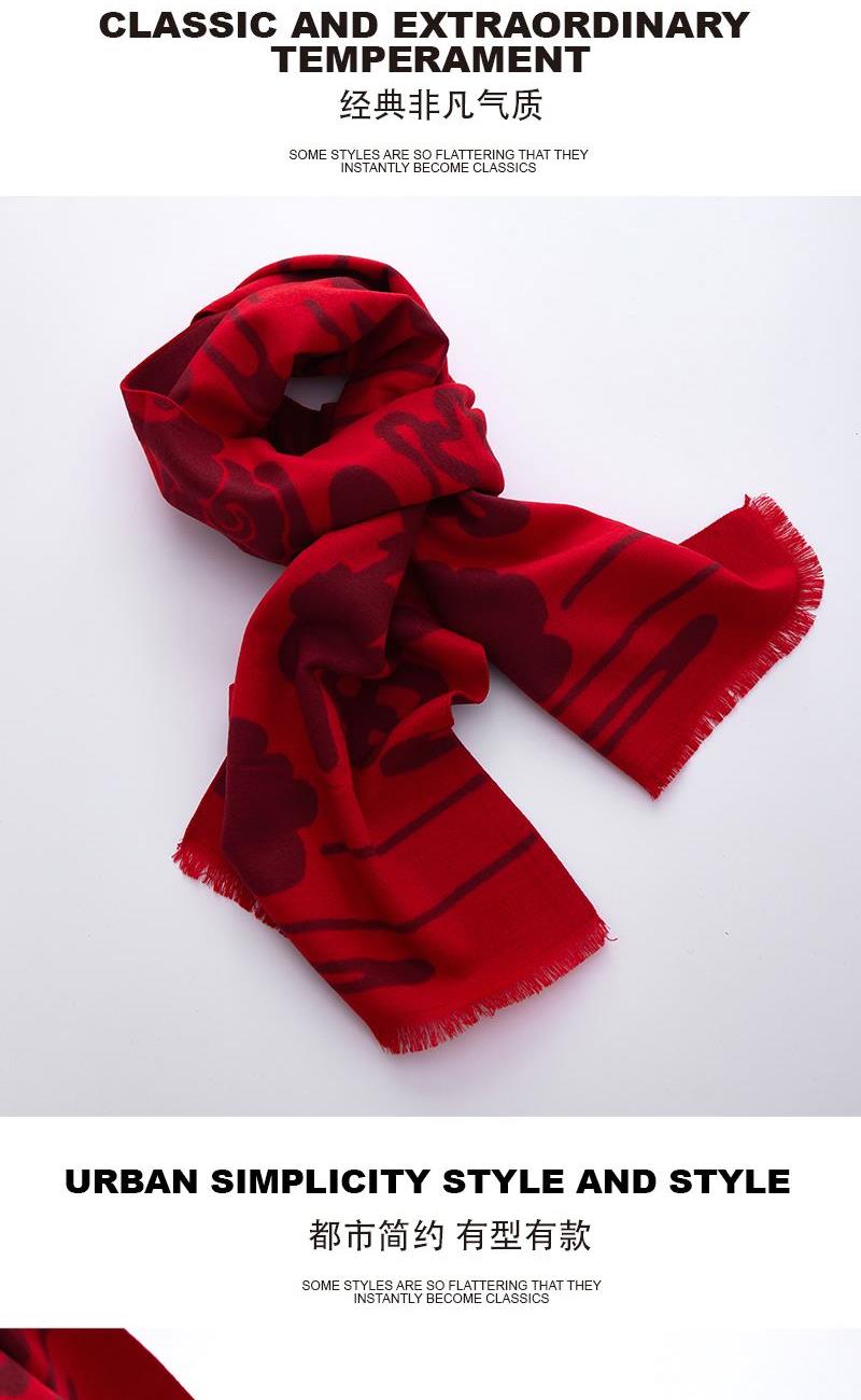 默认OPP袋包装,如需要礼盒装请与我们联系。 面料:65%聚酯纤维+35%再生纤维素纤维 尺寸:33x185cm 卖点: 1、采用新型再生纤维素纤维材质,极度细腻柔软。 2、中国红祥云设计,寓意吉祥喜庆。 3、搭配精美礼盒。
