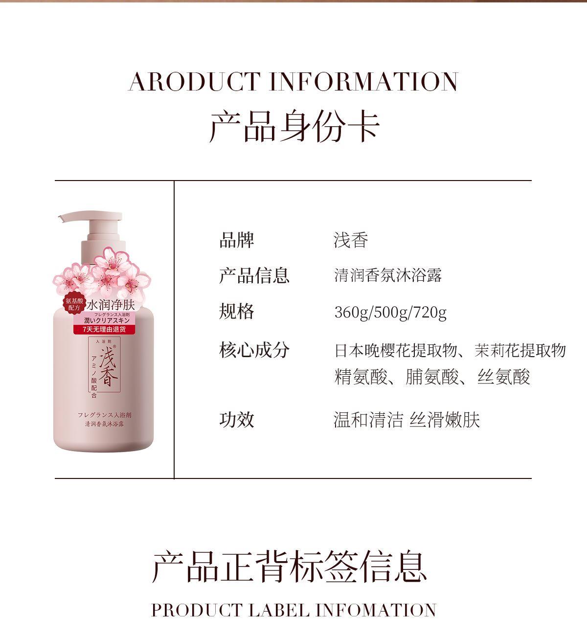 浅香日本晚樱花萃沐浴露(清润型)720g