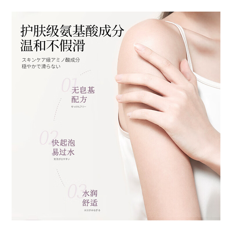 1、双重鲜花精粹:晚樱+茉莉花精粹,B13氨基酸配方体系。 2、温和清洁,泡沫丰富绵密,清洁的干净的同时易冲洗。 3、添加有晚樱和茉莉花精粹、提亮肤色作用。 4、浴后水润不紧绷,细腻柔滑,特有天然芳香,持久留香。
