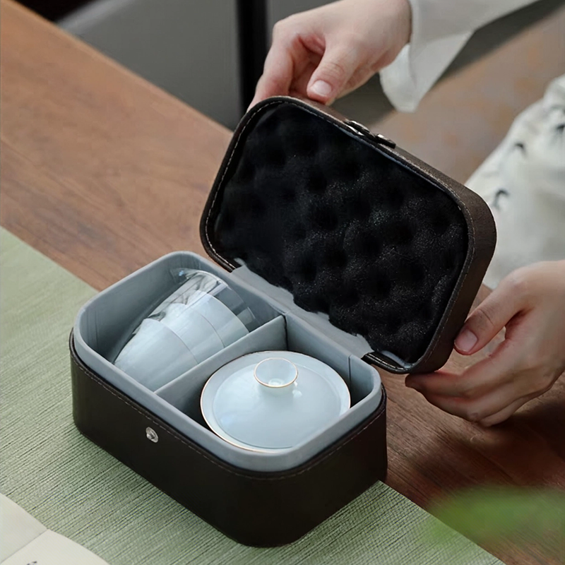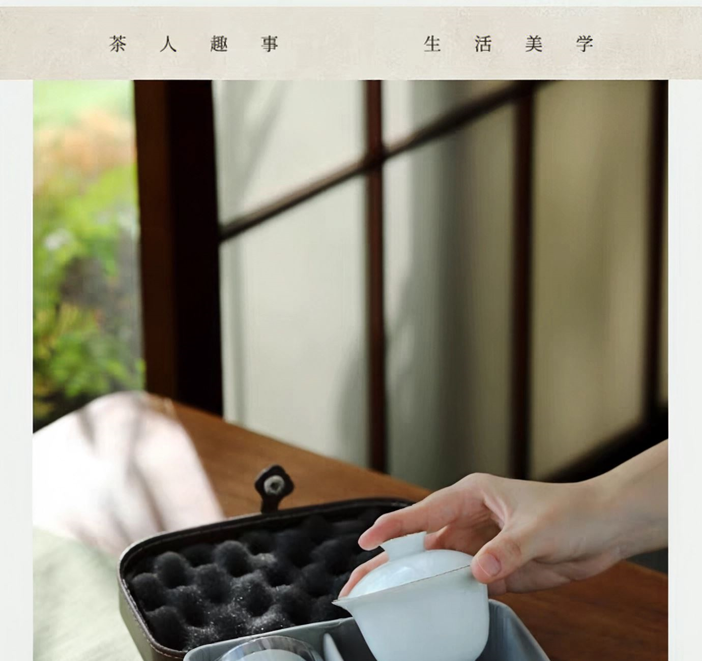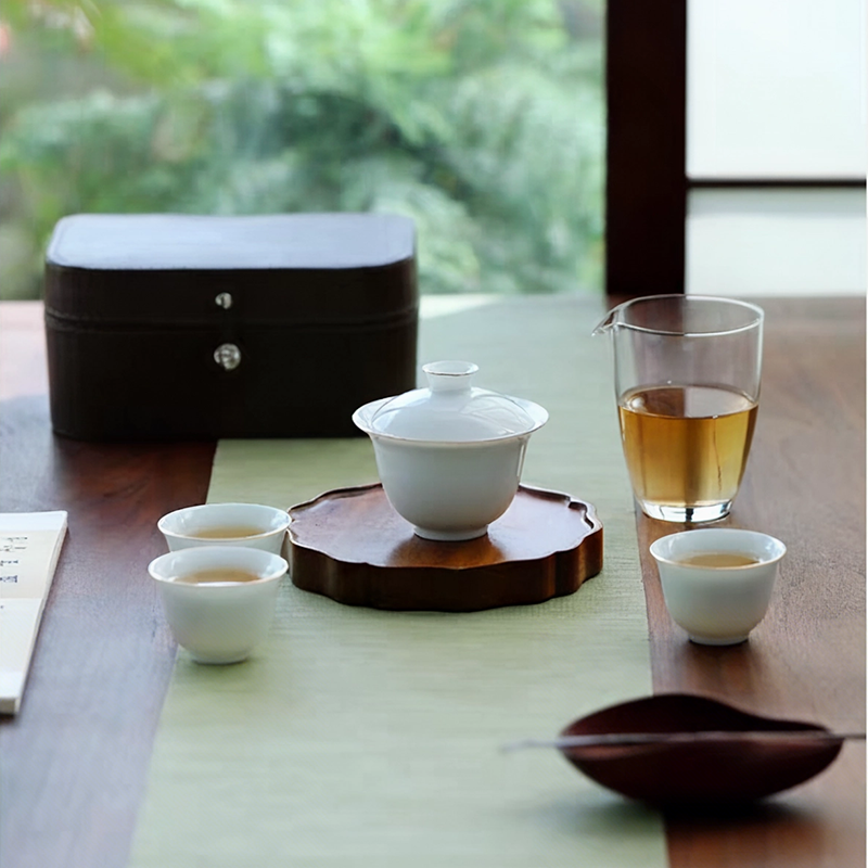 尾桥下窑影青玉瓷悦己旅行茶碗小套装开业礼品会议礼品年会伴手礼