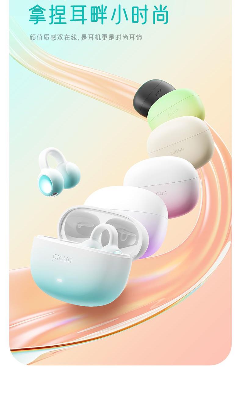 蓝牙方案 : JL6973 蓝牙版本 : V6.0 接受距离 : 10m 频响范围 : 20HZ- 20KHZ 电池容量: 28mA /250mA 使用时间(70%音量:≈4h 喇叭尺寸 : 13mm 喇叭灵敏度: 100±3db 1、支持【picun品存】APP智能互联控制 2、轻盈小巧,单只 3.9 克 3、软弹耳夹,久戴也舒适 4、澎湃音质,重低音出色