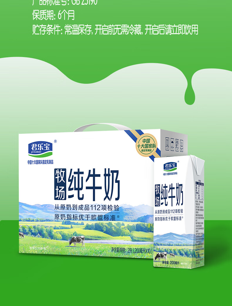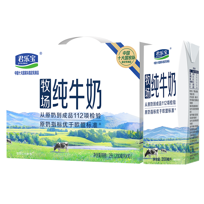君乐宝牧场纯牛奶(原味)利乐砖1-10-200ml特渠专属