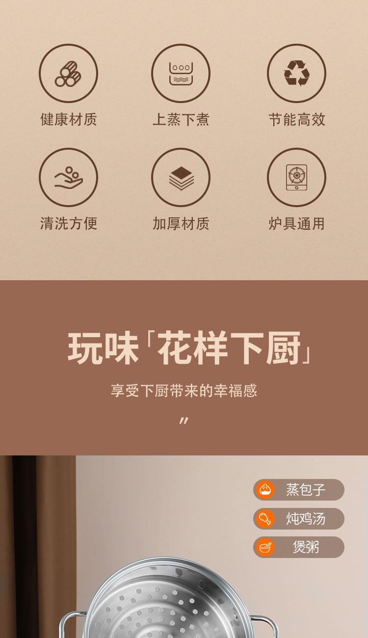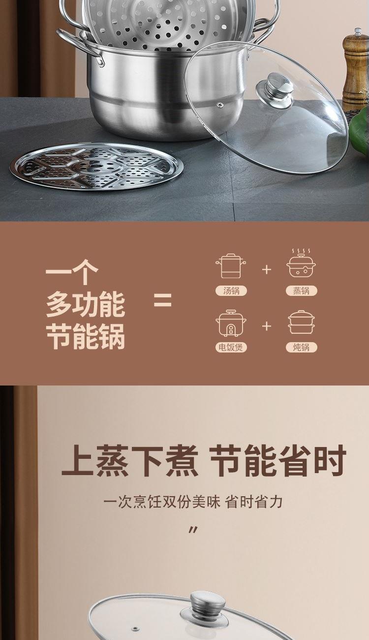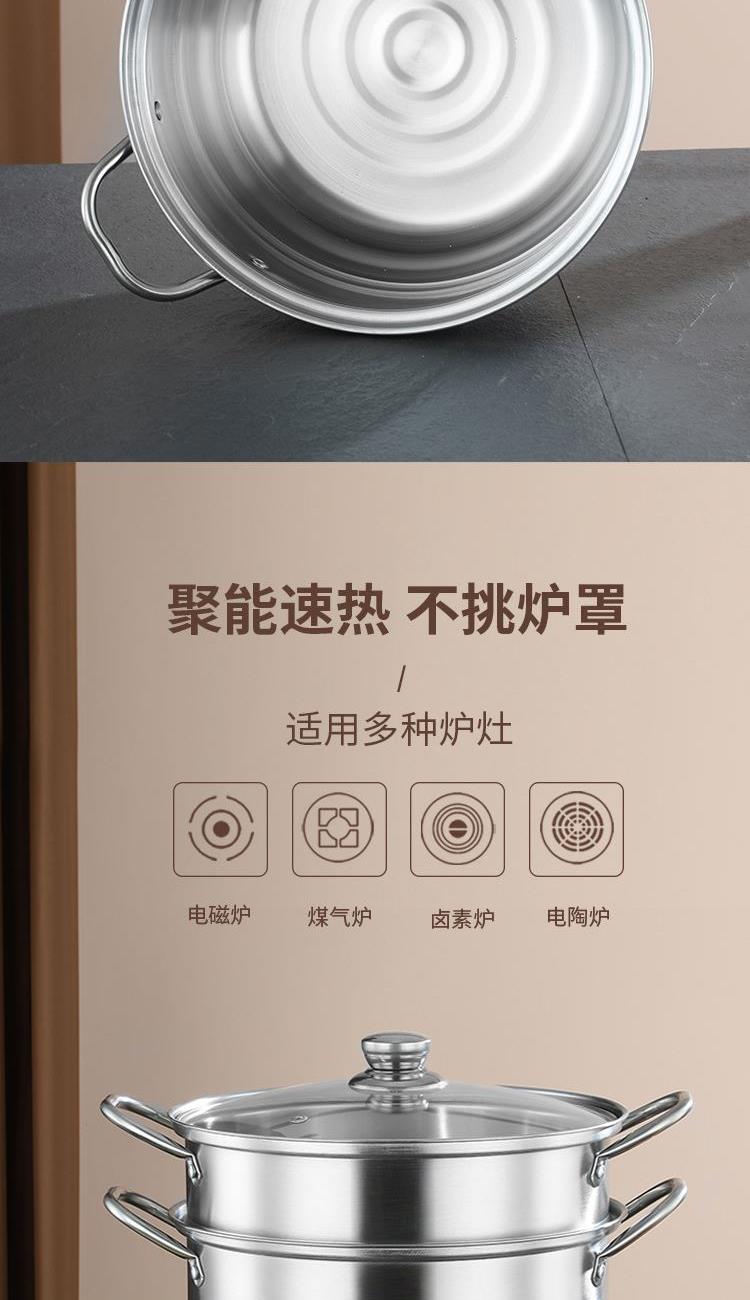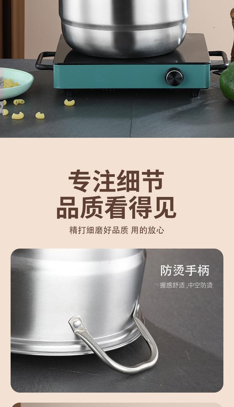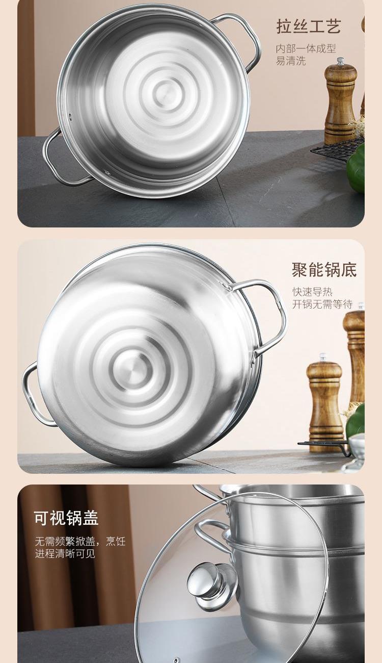 【材 质】: 不锈钢 【规 格】: 28cm 【彩盒尺寸】 33*17*28cm 【外箱尺寸】 68*53*58cm 不锈钢汤锅采用优质不锈钢材质,具有优异的耐腐蚀性和耐高温性,能够长时间保持表面光洁如新,不易生锈或变形。其材质特性使其在长期使用中依然坚固耐用,适合频繁的烹饪需求 不锈钢材质稳定性强,不易与食物中的酸碱成分发生化学反应,无毒无害,适合长时间炖煮汤类。此外,其表面光滑不易残留污渍,清洁方便,可有效避免细菌滋生,保障饮食安全