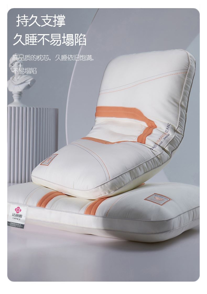 规格:48*74cm±5cm 面料:针织棉 填充:3D螺旋纤维 执行标准:GB/T22796-2021 安全类别:GB18401-2010 B类 1.柔软舒适,精选优质针织棉,良好的呵护颈椎,舒适的睡眠时光。面料透气网眼,夏天不闷热,稀释透气。惊喜绗缝,优质绗缝工艺,不抛料,品质保障。 2.枕头高弹力,贴合人体脊椎生长曲度,仰睡侧睡都可以,给您更好的承托力。