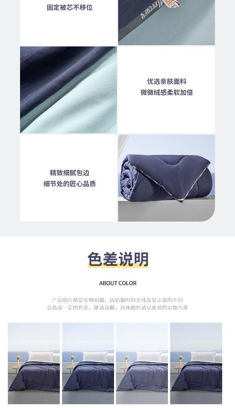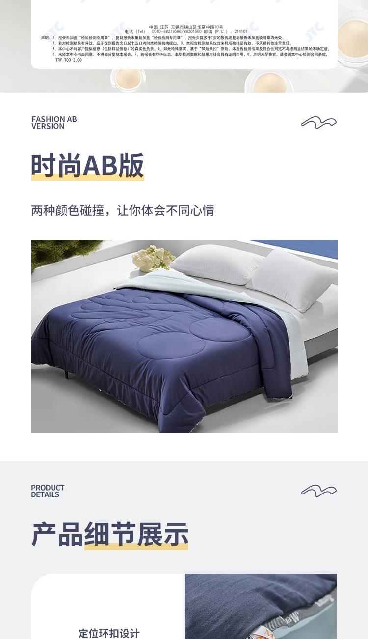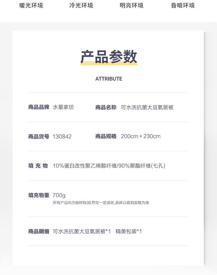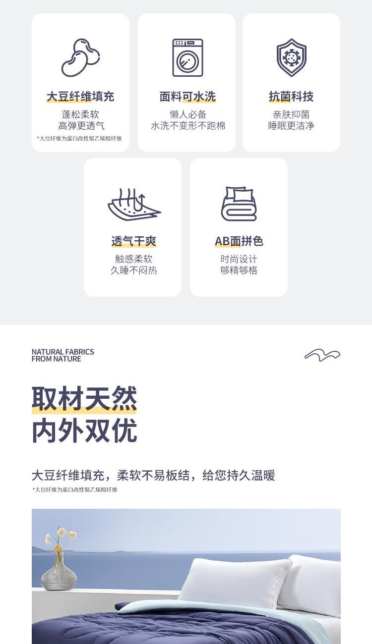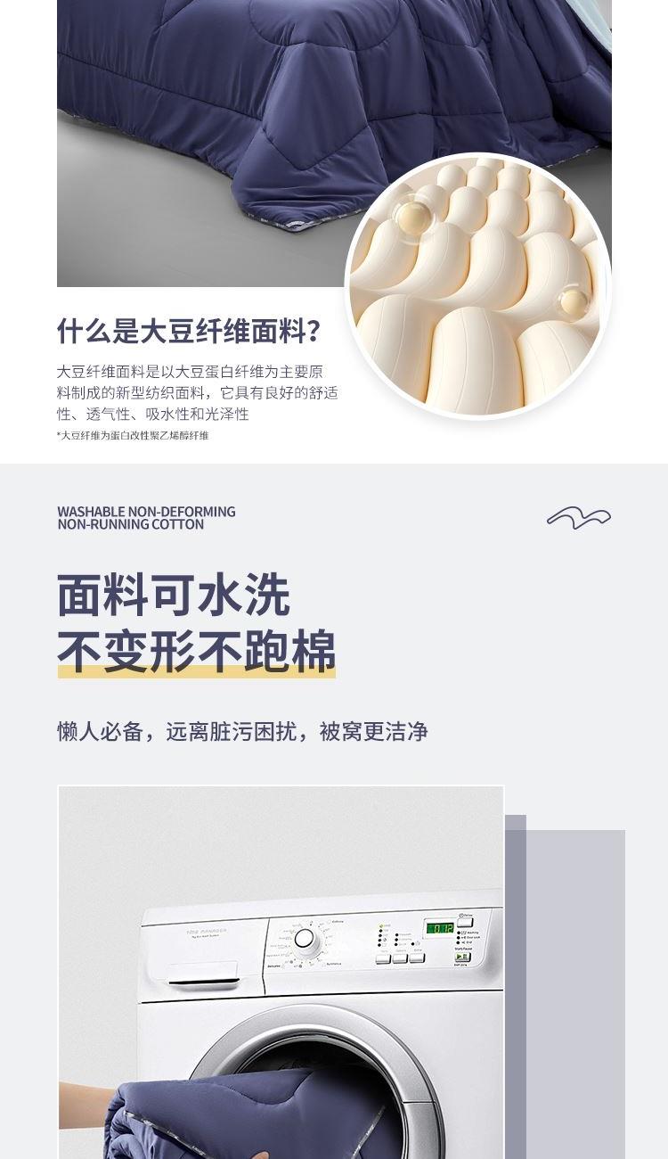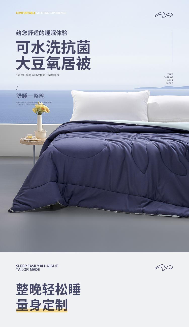 规格 200cm×230cm 面料:聚酯纤维 填充物:10%大豆90%聚酯纤维 填充物重:700g