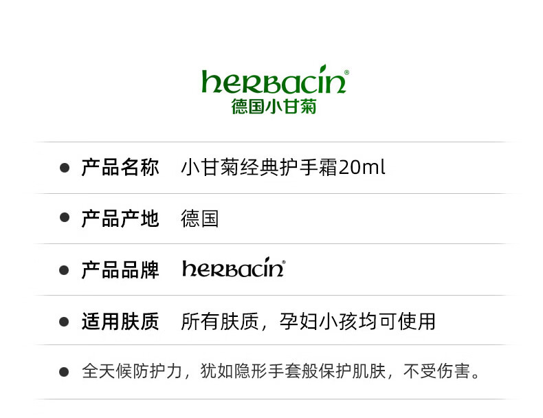 原产地:德国 规格:经典护手霜20ml、清爽护手霜20ml、指甲刀 功效:滋润手足、抚平粗糙、轻盈舒缓、补水防护、打造细化水嫩肌肤 保质期:4年 适合肤质:所有肌肤 礼盒尺寸:13.5*13.5*3.5cm 条形码:4013718981635