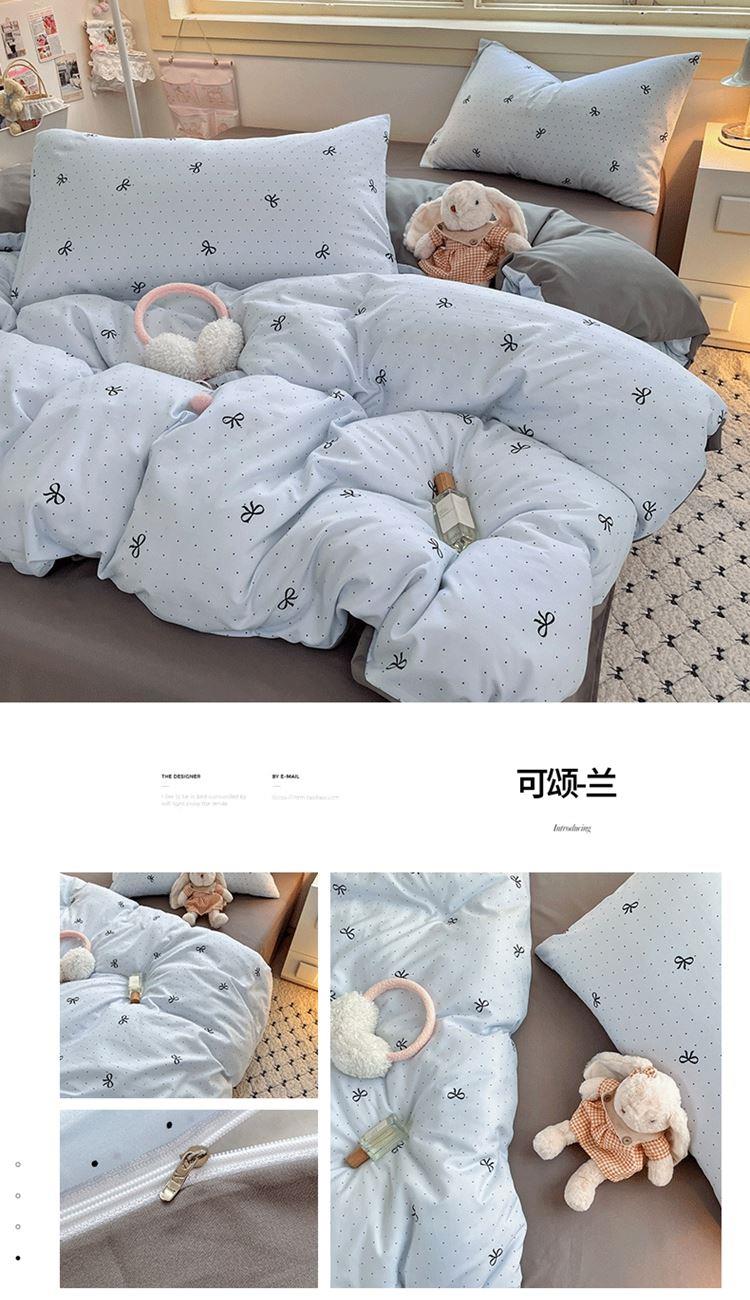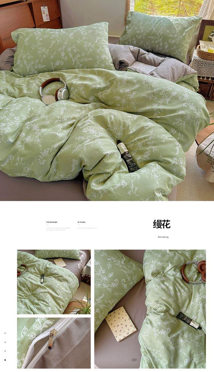 花花公子-家纺-亲柔棉AB版小碎花撞色四件套-四季款