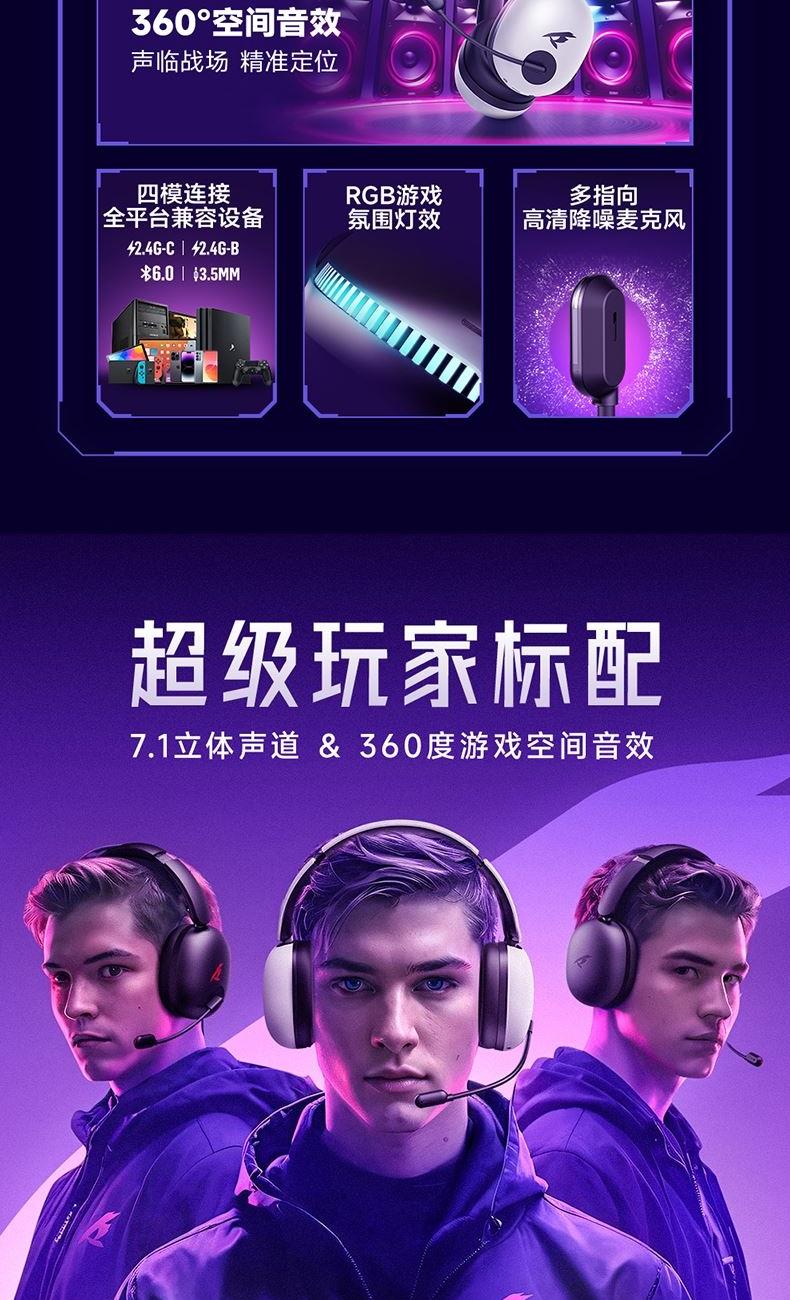 颜色:白黑色、黑红色、太空灰 连接方式:蓝牙,插线 蓝牙方案:JL7018M+JL7016 蓝牙版本:V5.4 接受距离:10m 频响范围:20HZ-20kHZ 电池容量:1500mA 使用时间(70%音量):≈100h 喇叭尺寸:50mm 喇叭灵敏度:105+3dB 充电接口:TYPE-C 1、支持【picun品存】APP智能互联控制 2、专业游戏级:25-40毫秒内无感延迟 3、RGB游戏氛围装饰灯 4、zui长达100小时续航 5、强大的动态EQ沉浸音效 6、50MM大喇叭单元 7、手机/PS4/PS5/switch/PC全兼容
