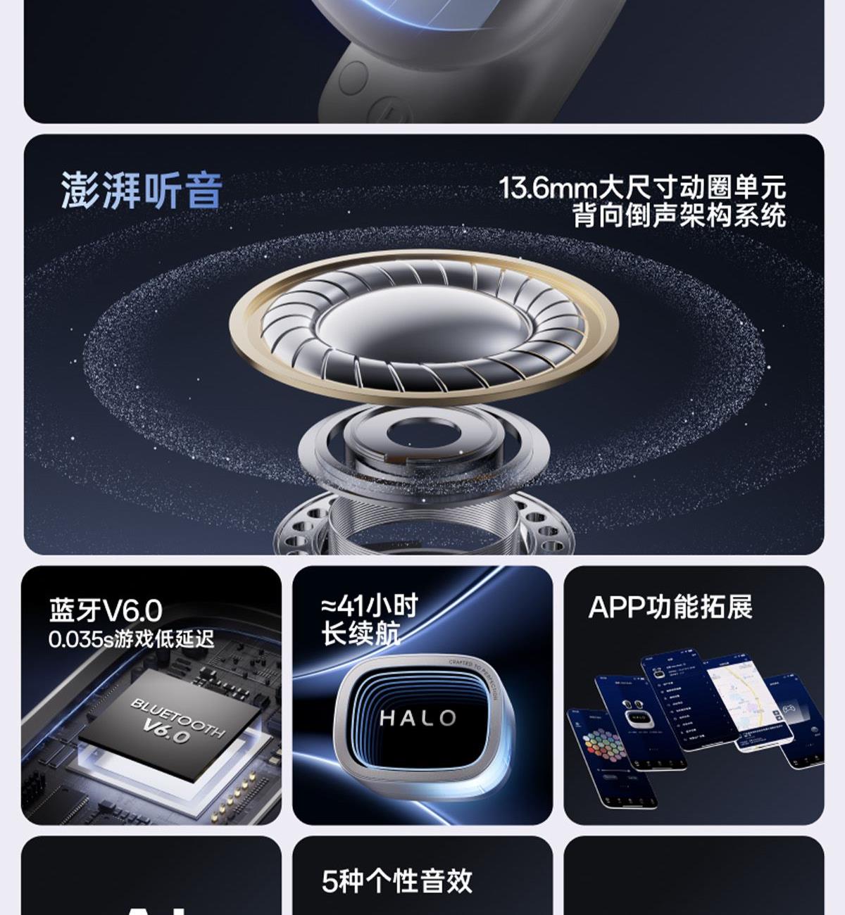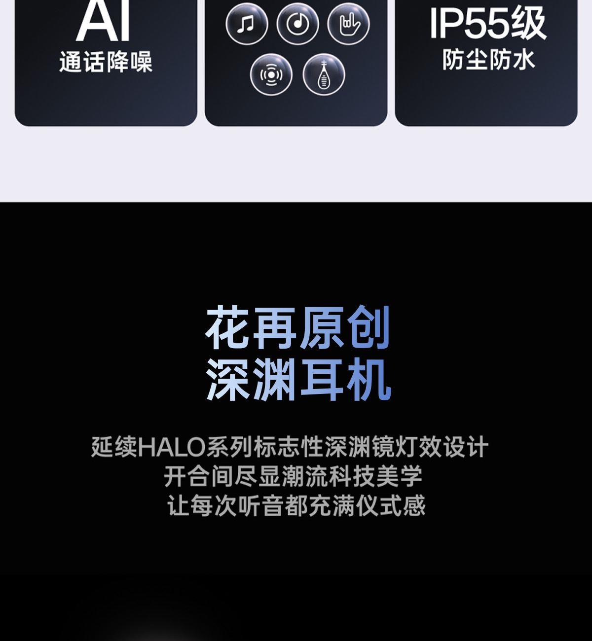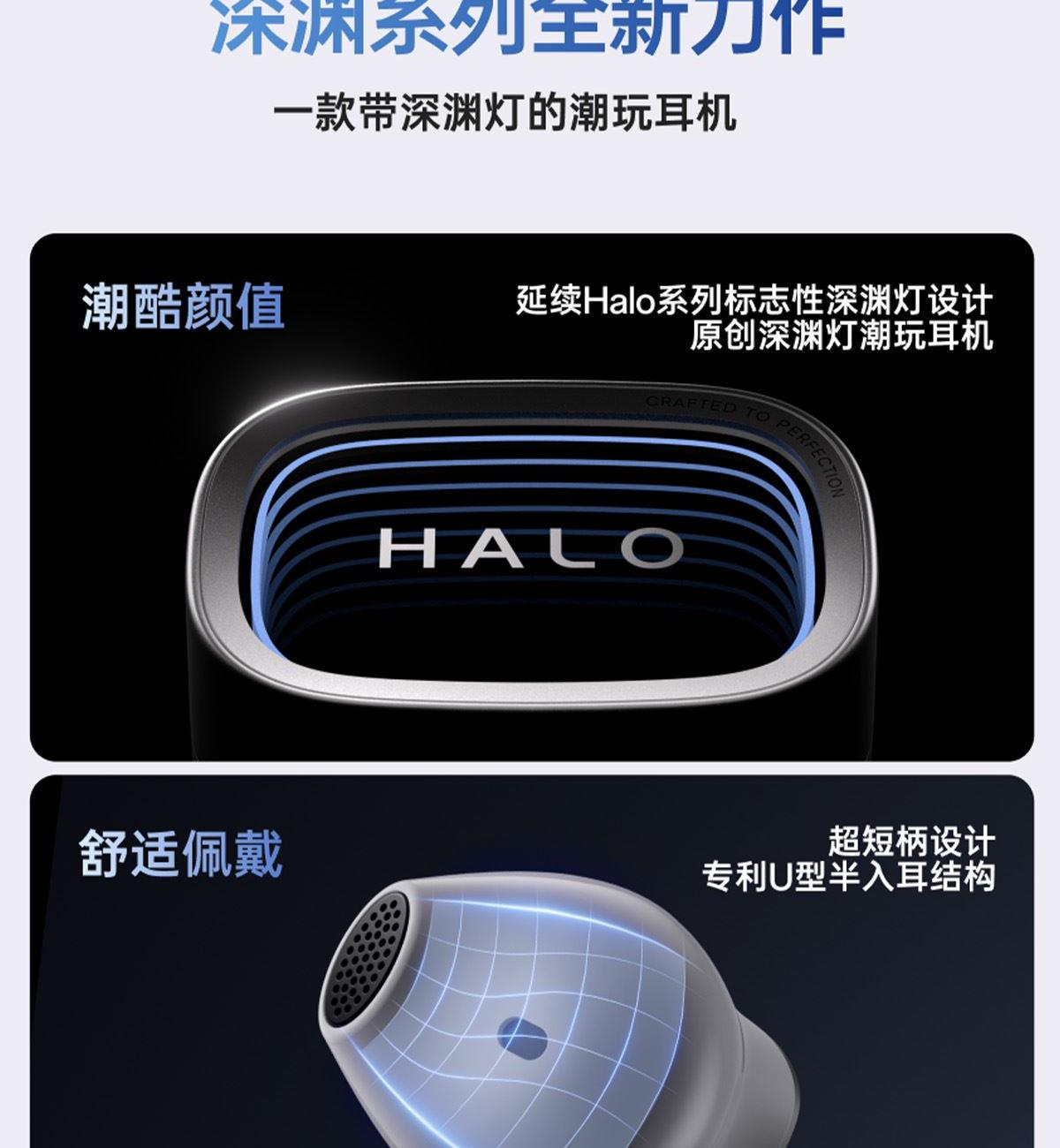 原创深渊灯潮玩耳机 U型半入耳结构 13.6mm大尺寸动圈单元 AI通话降噪 IP55级防尘防水