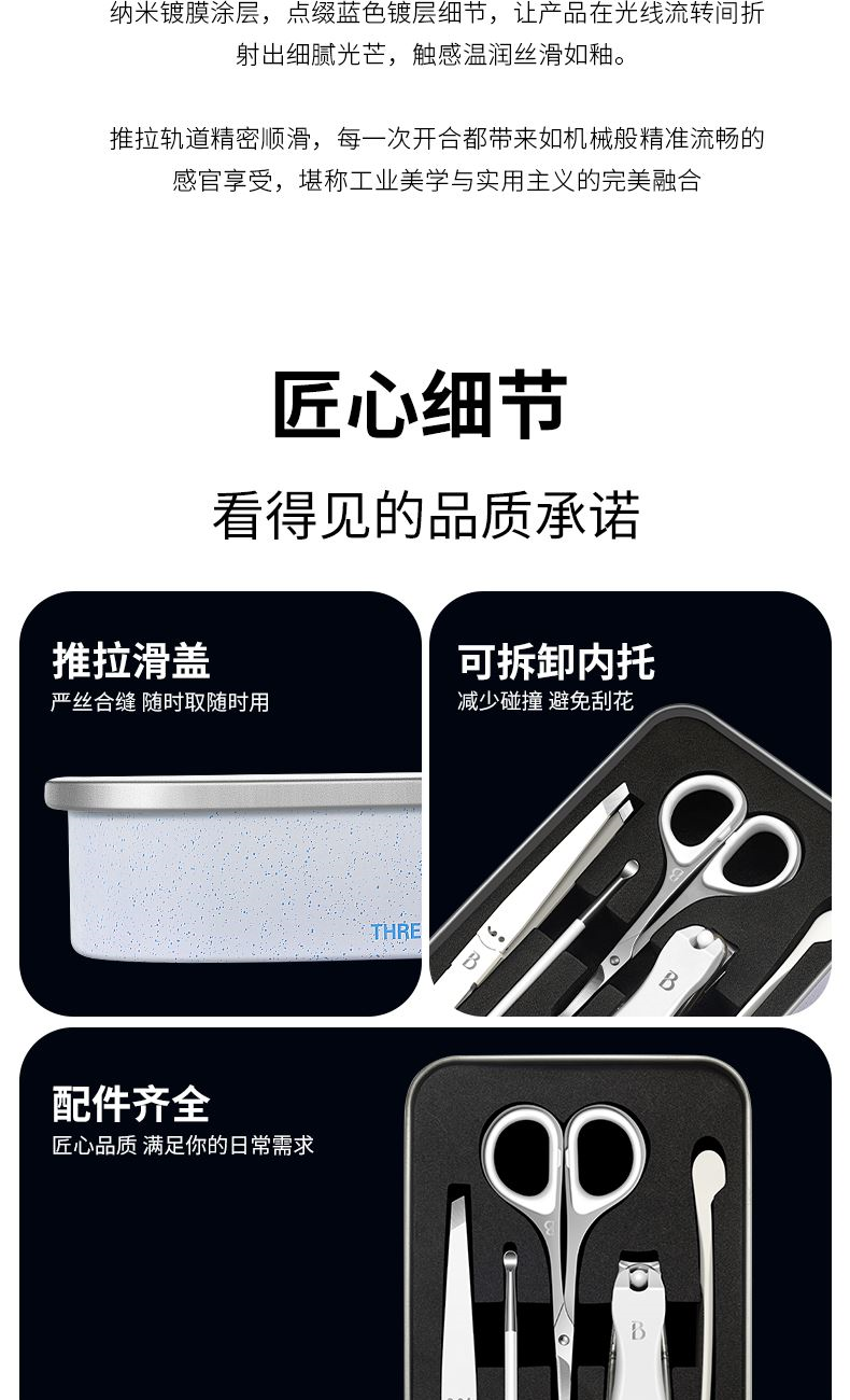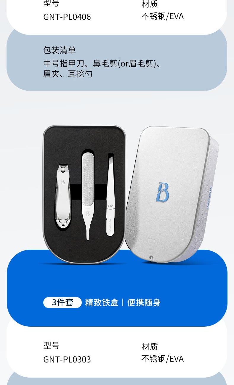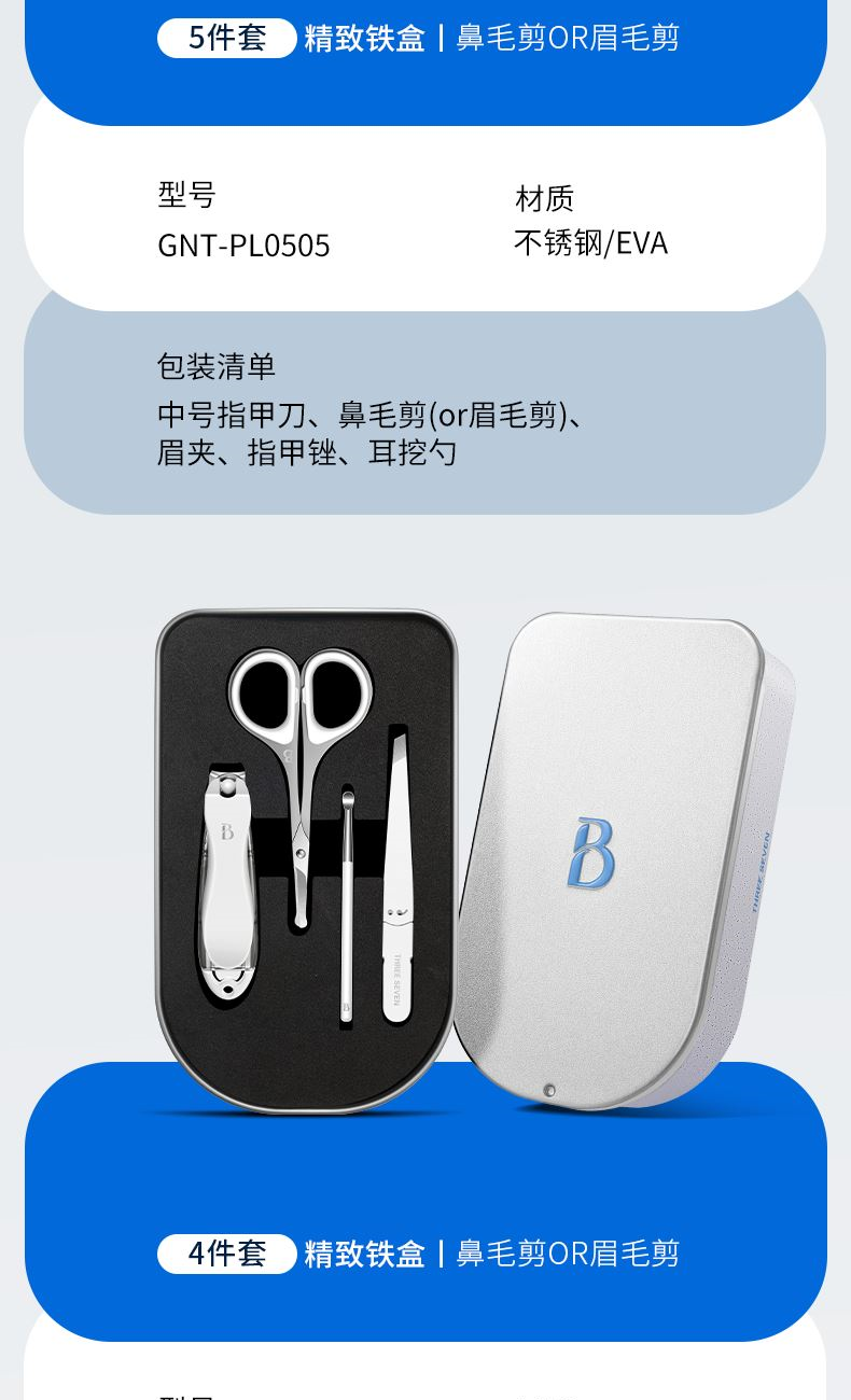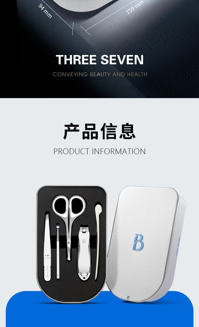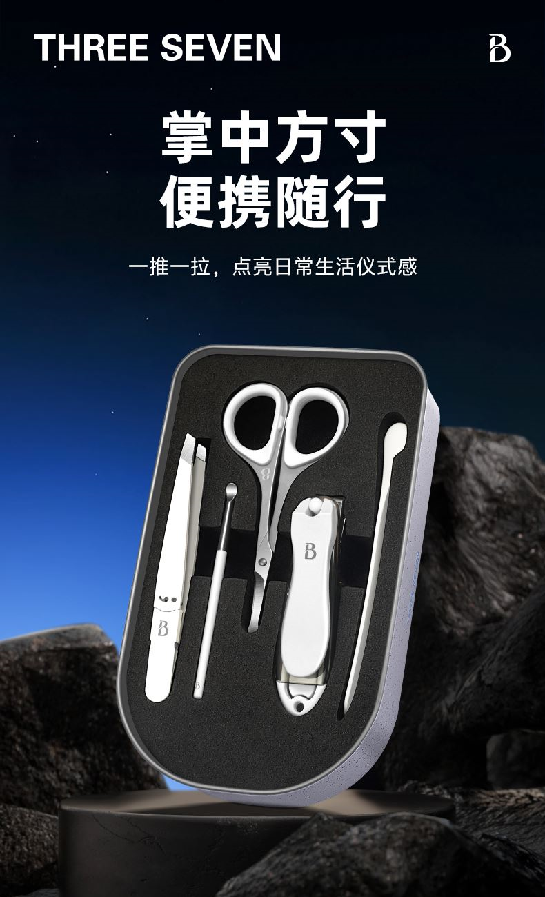 产品配件:平口指甲刀、眉毛剪、耳挖、眉夹、指甲锉