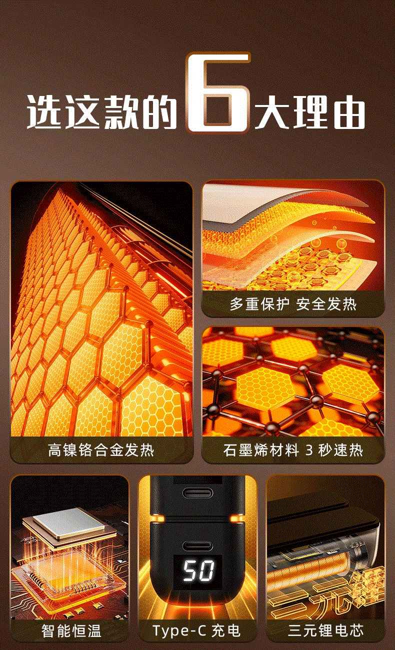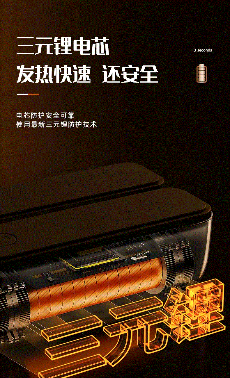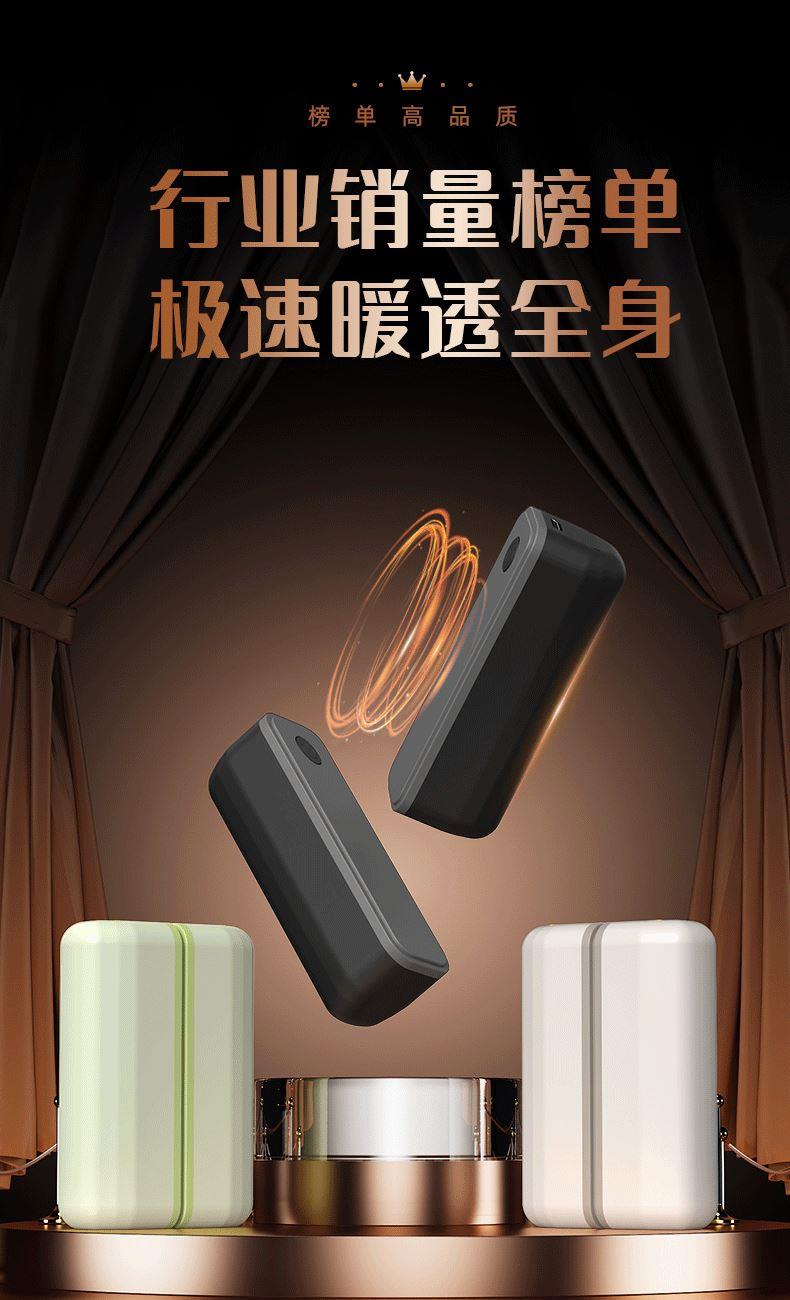 产品材质:铝合金+ABS 产品尺寸:67.2*96.7*30mm 电池容量:5200mAh 档数:三档( 40°-60°) 产品颜色:白色,绿色,黑色 暖手宝功能,温度三档调节,满足你不同时刻的需求。 数显设计,不仅显示温度,也能显示电量,方便及时充电。 双面发热;磁性功能