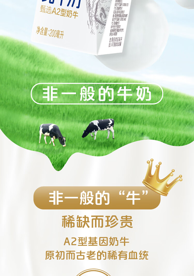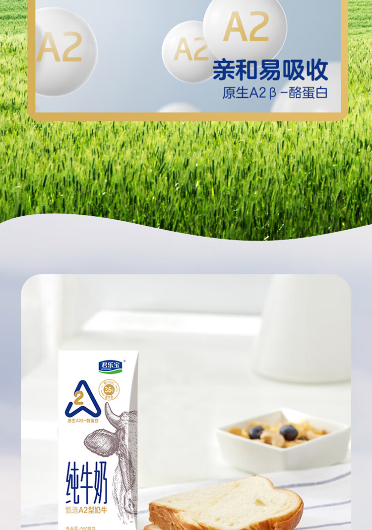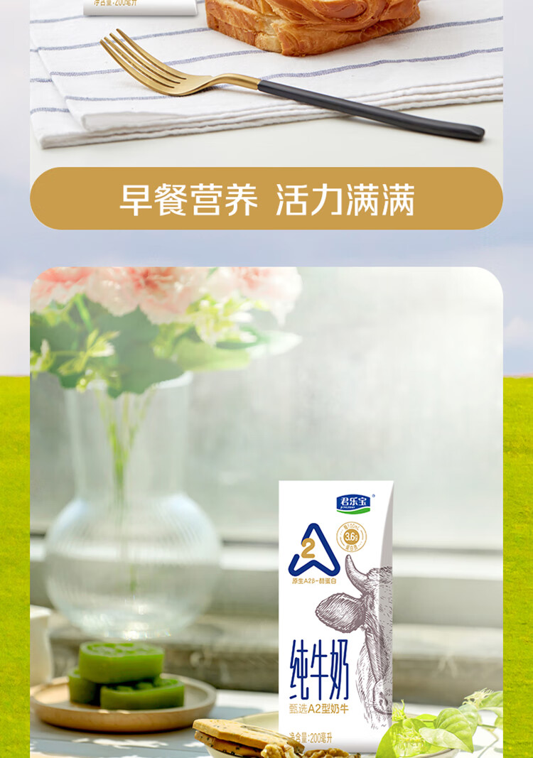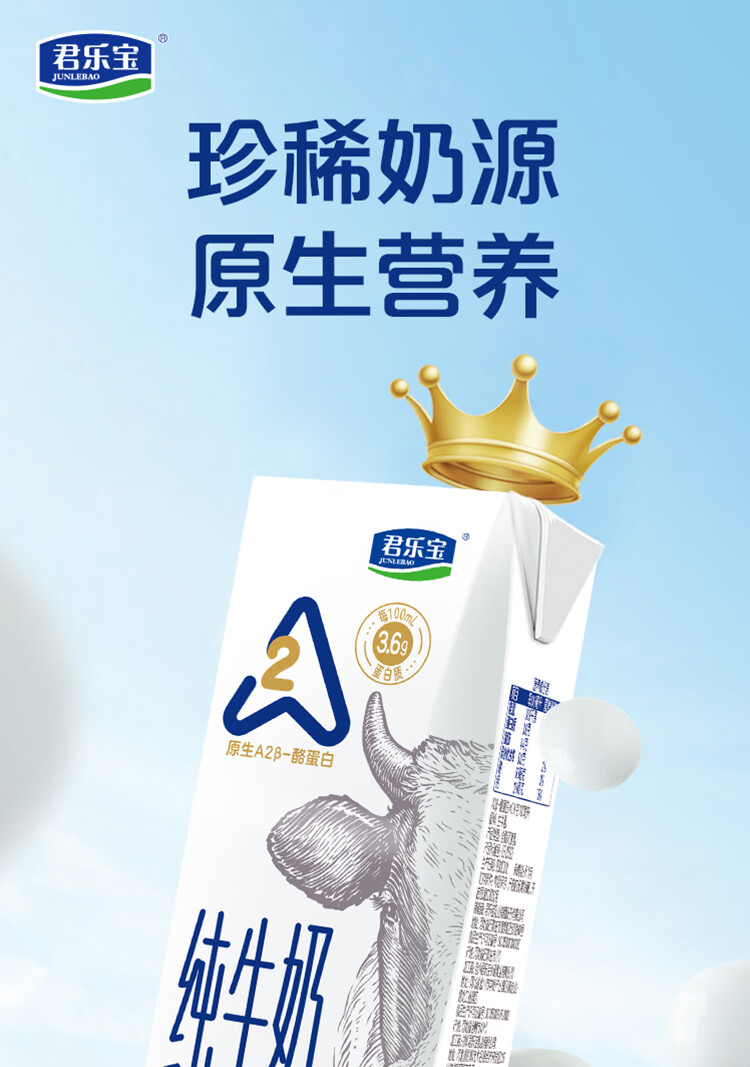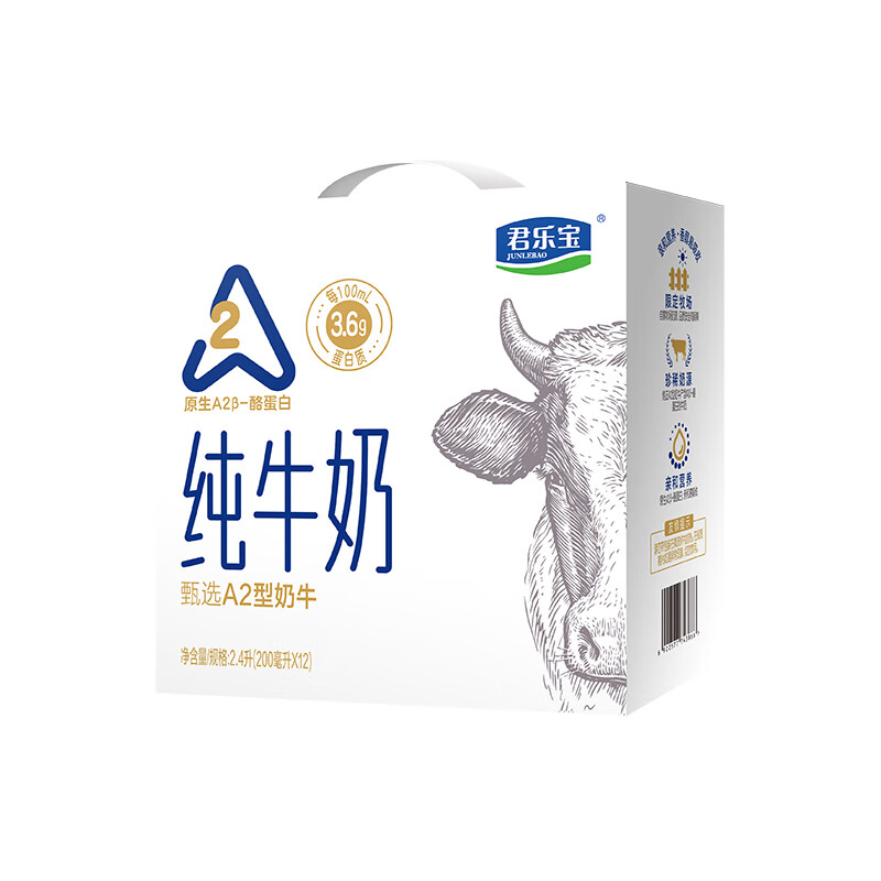 君乐宝3.6g乳蛋白A2纯牛奶200ml*12(特渠专属)