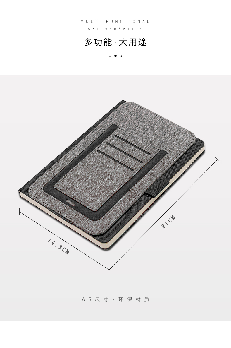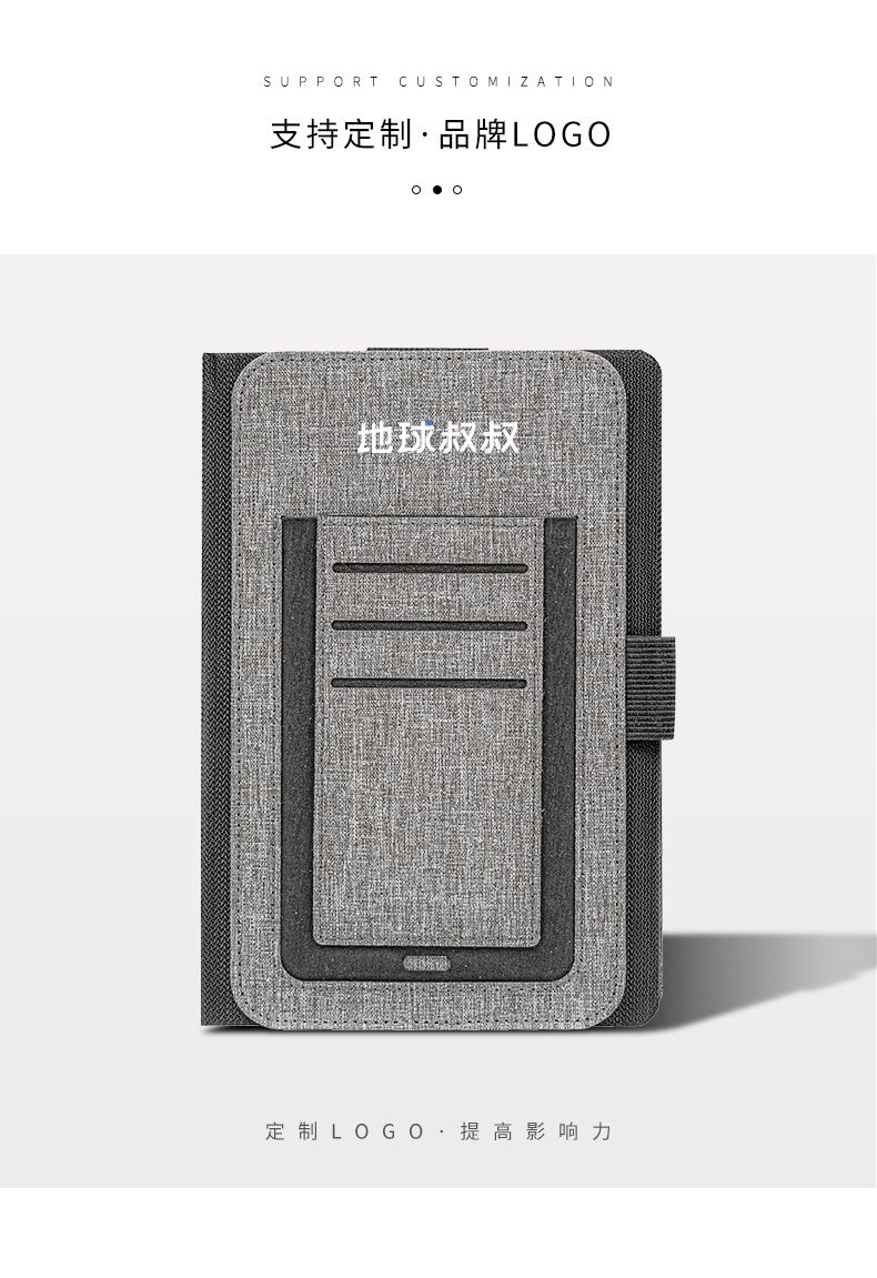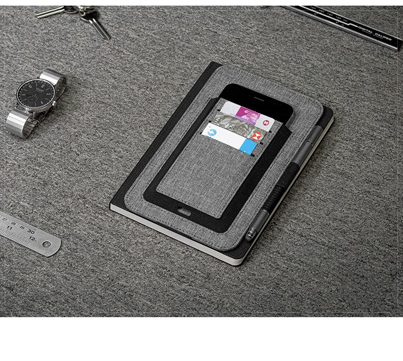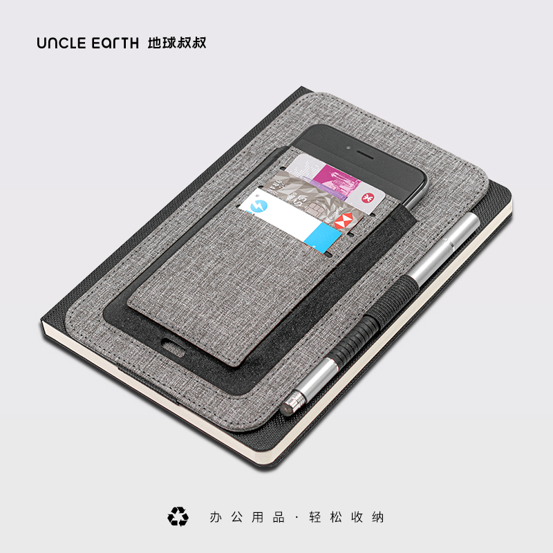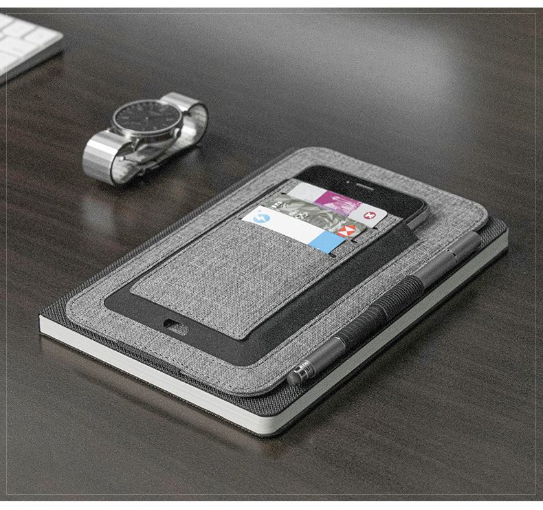 纳, 配有集成卡夹、笔环和手机袋等功能。