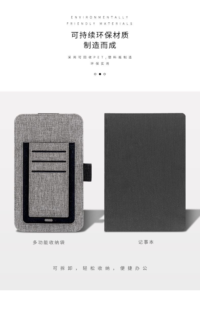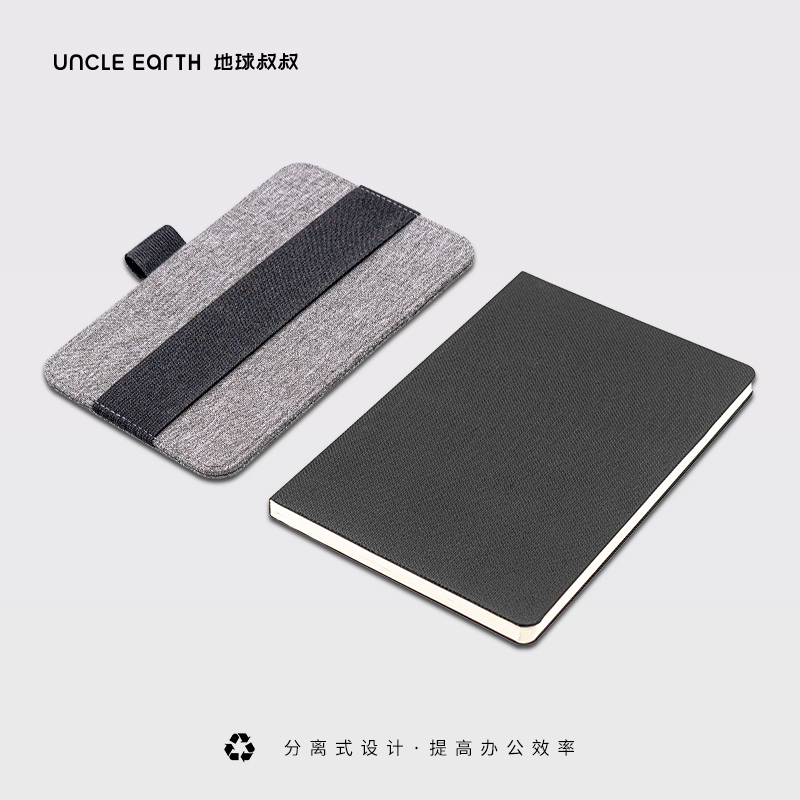2.笔记本封面和可拆卸实用收纳“背尔袋带”均由可回收得 PET 聚酷 聚酷瓶材质材质制成。此外, 这款 A5 横格记事 本采用创新的线迹装订, 可在任何水平面上打开, 并采用 适合钢笔的无酸纸。