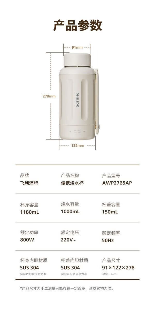 飞利浦(PHILIPS)便携保温烧水壶AWP2765
