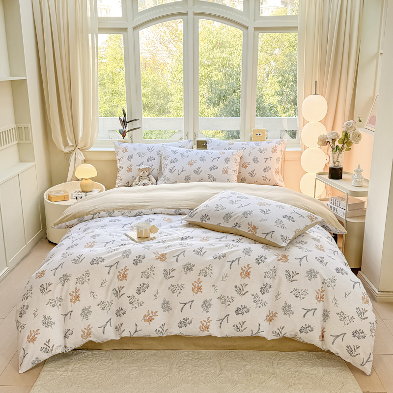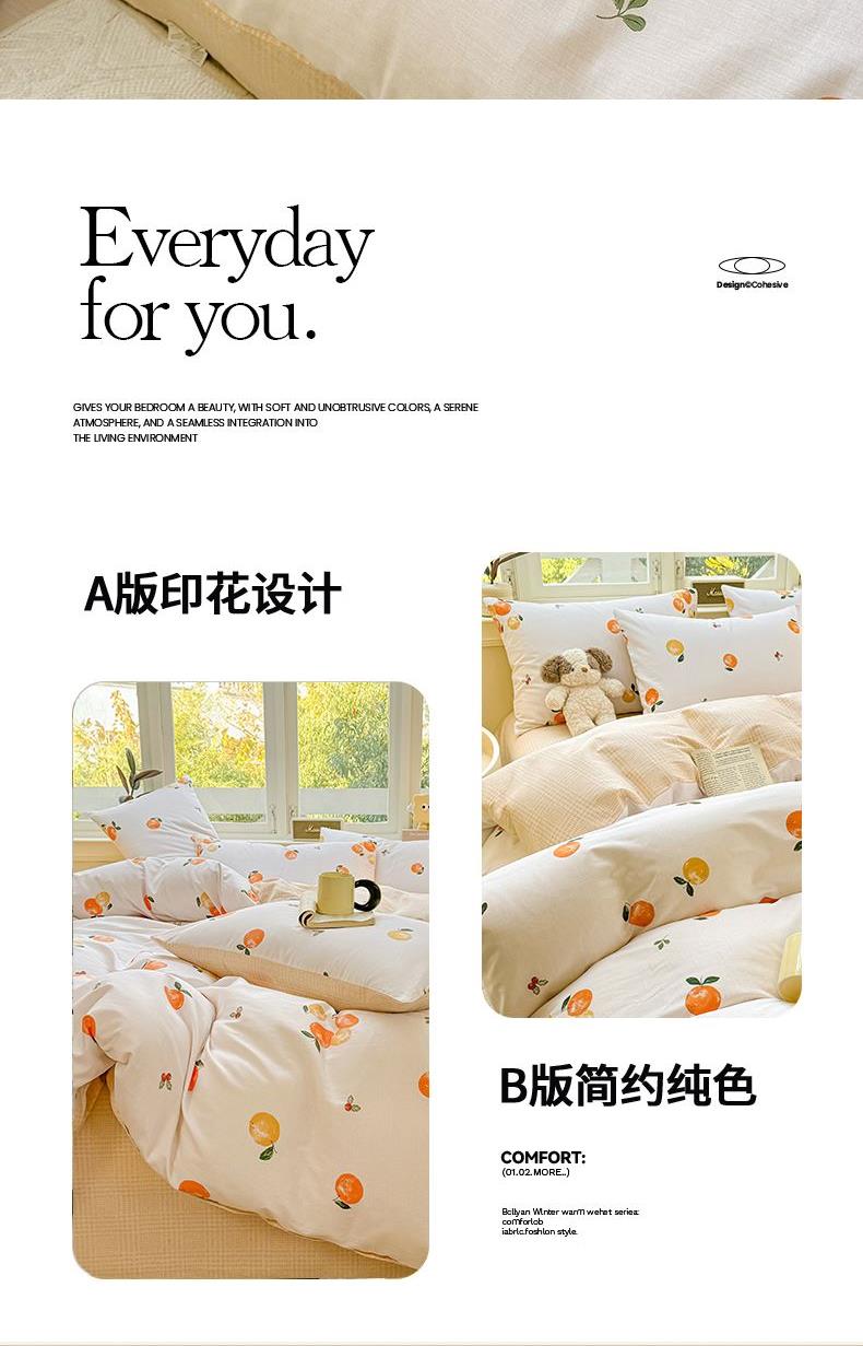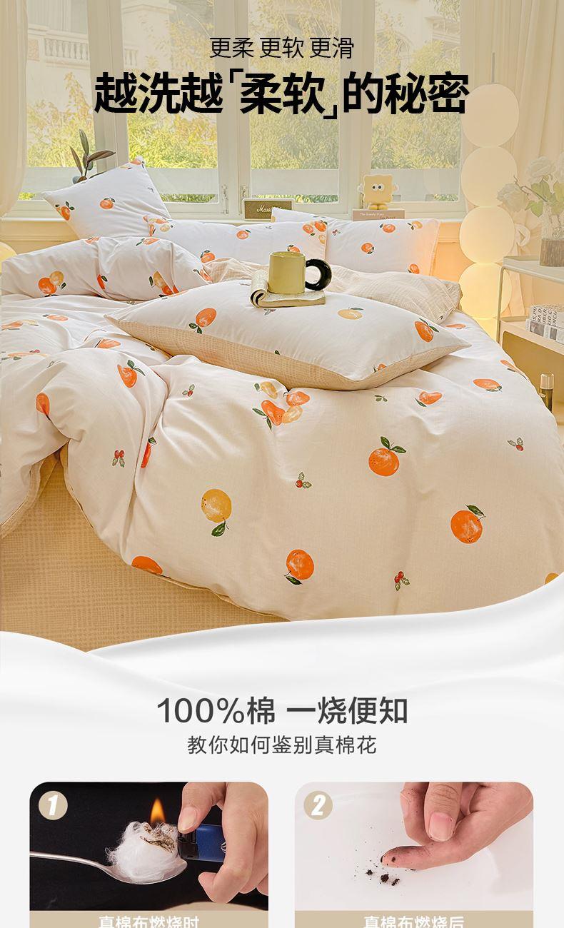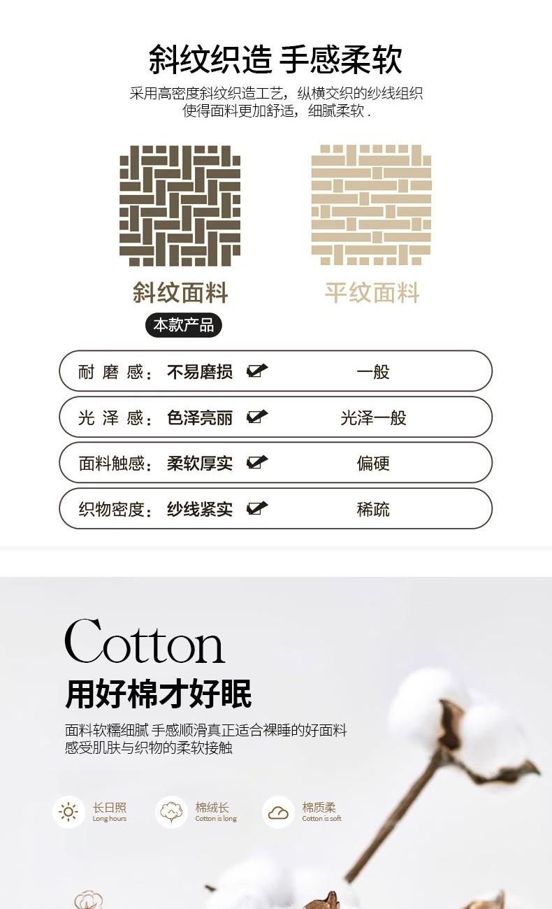 1:高支高密面料透气性高 柔软舒适 日照充足,纤维柔韧,肉眼可见的高品质面料无纱结,质感比一般的新疆纯棉舒适面料 2:每一次接触都能感受到自然的呼吸仿佛被云朵包裹住身体,帖服保暖,远离闷热感 3:AB 面均采用不同设计,时尚不失格调适合多种家居风格,随心所欲 尺寸:被套200*230cm*1 床单:230*245cm*1 被套:48*74cm*2 包装:礼盒