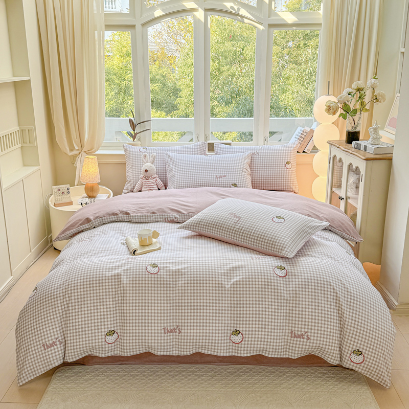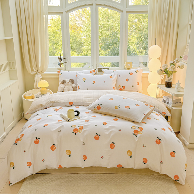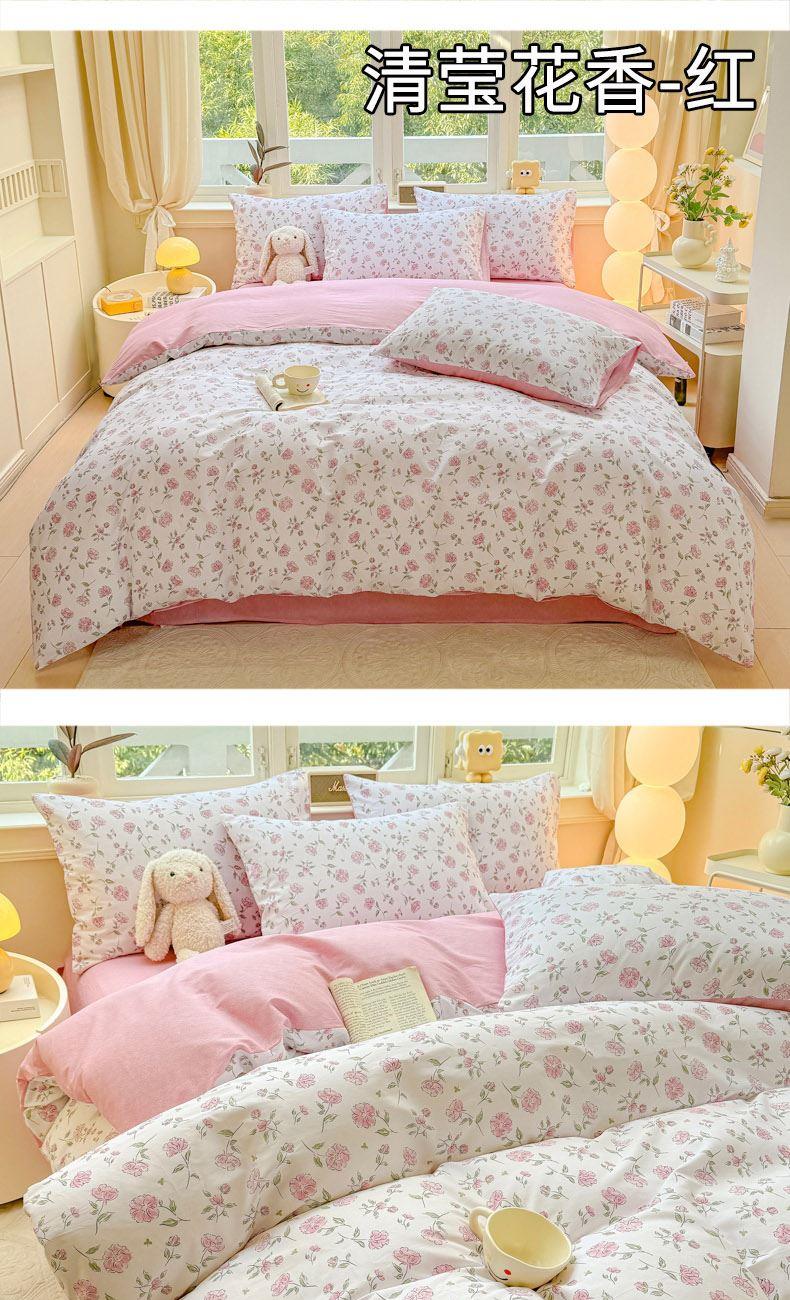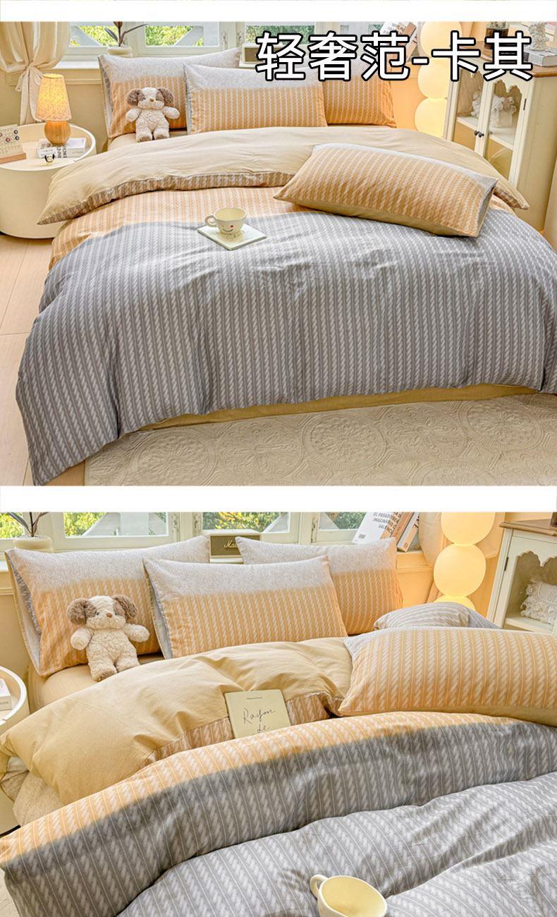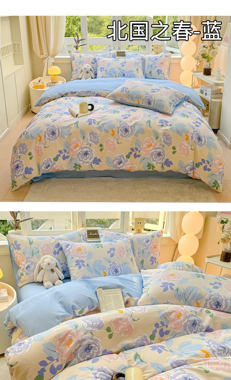 1:高支高密面料透气性高 柔软舒适 日照充足,纤维柔韧,肉眼可见的高品质面料无纱结,质感比一般的新疆纯棉舒适面料 2:每一次接触都能感受到自然的呼吸仿佛被云朵包裹住身体,帖服保暖,远离闷热感 3:AB 面均采用不同设计,时尚不失格调适合多种家居风格,随心所欲 尺寸:被套200*230cm*1 床单:230*245cm*1 被套:48*74cm*2 包装:礼盒