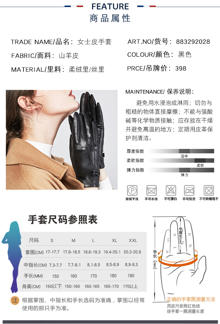 面料:羊皮革(山羊皮) 里料:柔绒里/丝里 颜色:黑色 货号:883292028