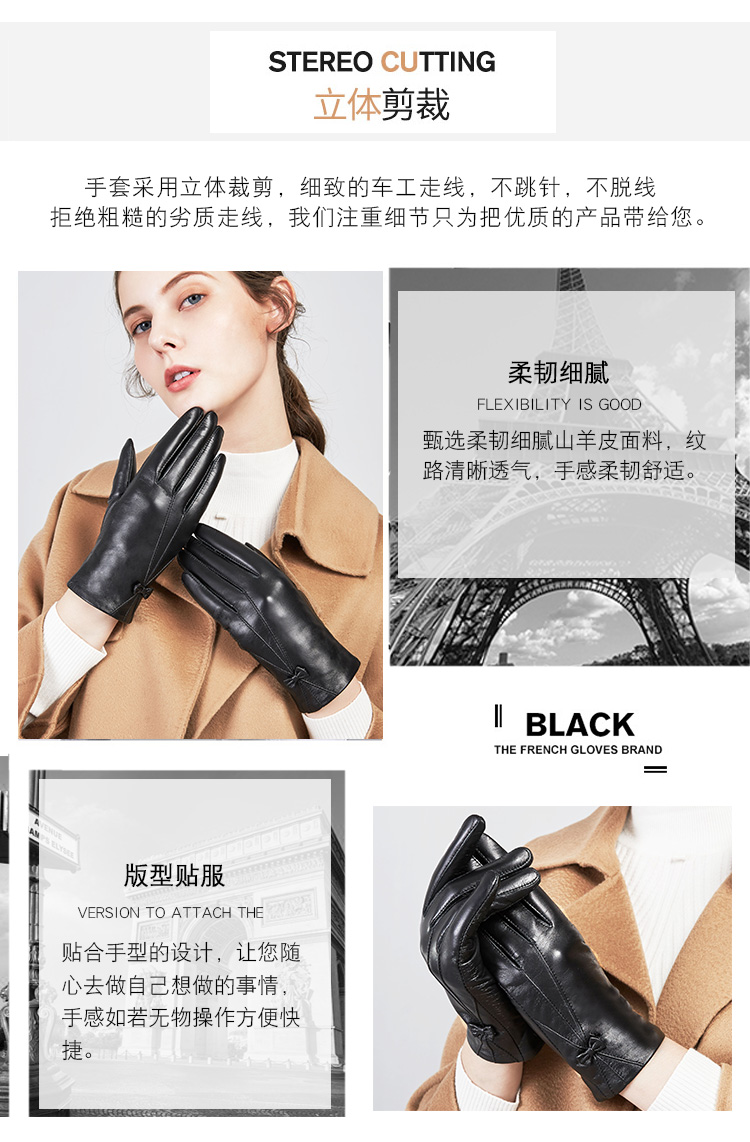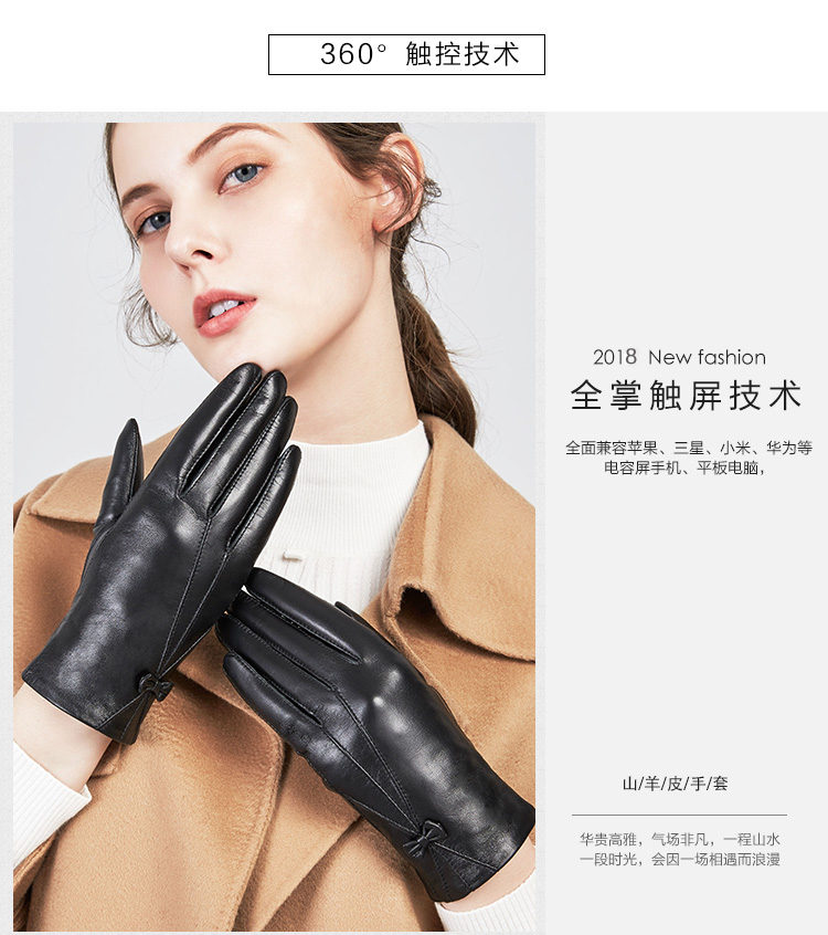 皮尔卡丹女士触屏皮手套