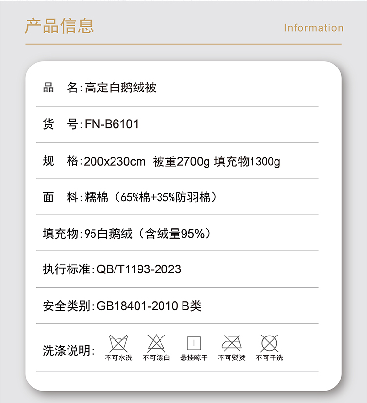 芳恩FN-B6101高定白鹅绒被200x230cm