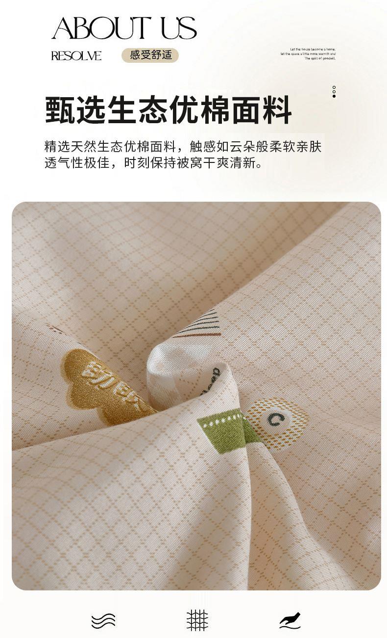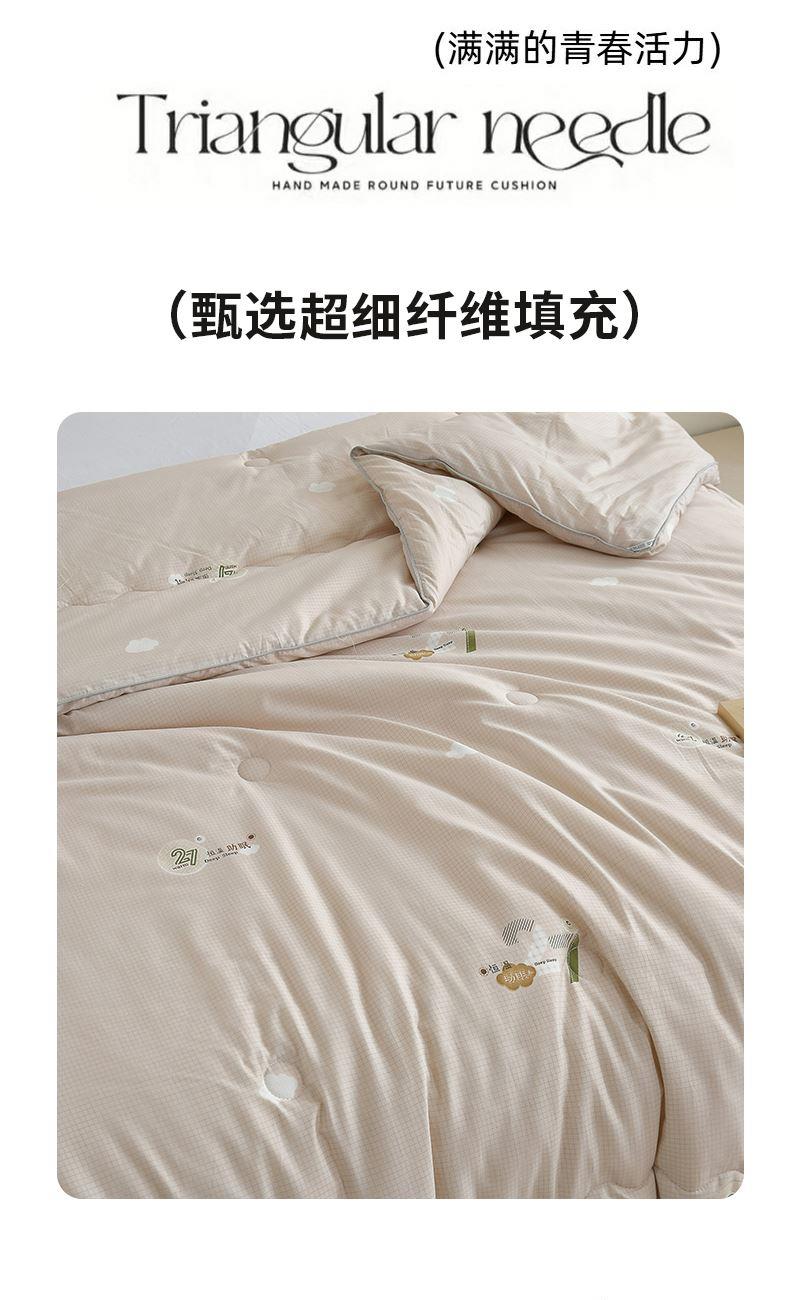 规格:200*230cm 面料:生态优棉 填充:纤维 重量:2000g 执行标准:GB/T22796-2021 安全类别:GB18401-2010 B类 精选天然生态优棉面料,触感如云朵般柔软亲肤,透气性好,时刻保持被窝干爽清新。 填充物为纤维,经过特殊工艺处理,具备出色的保暖性和回弹性。它能迅速吸收人体散发的热量并形成有效锁温层,智能调节被内微气候,让被窝始终处于“不冷不热”的黄金温度,有效延长深度睡眠时间。