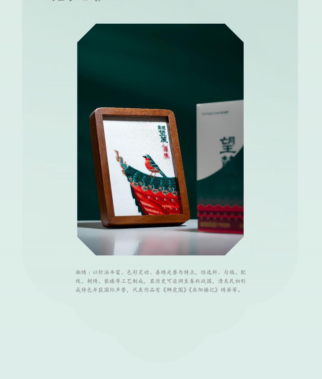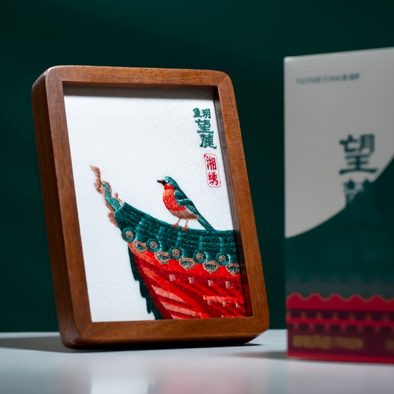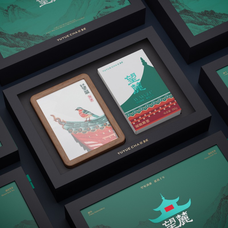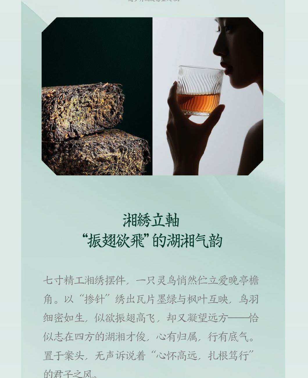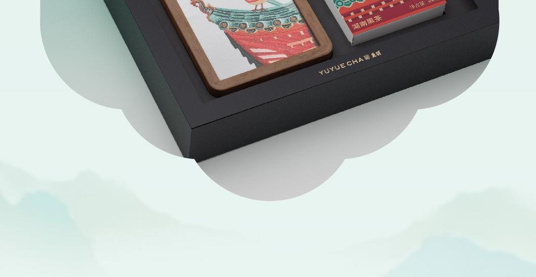 鱼玥望麓非遗文创两件套B款安化黑茶+湘绣摆件组合