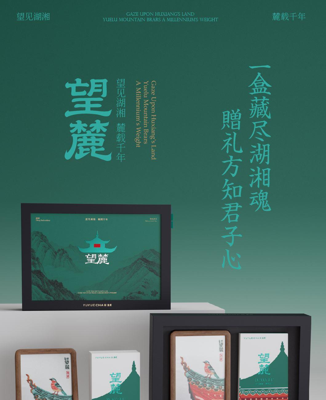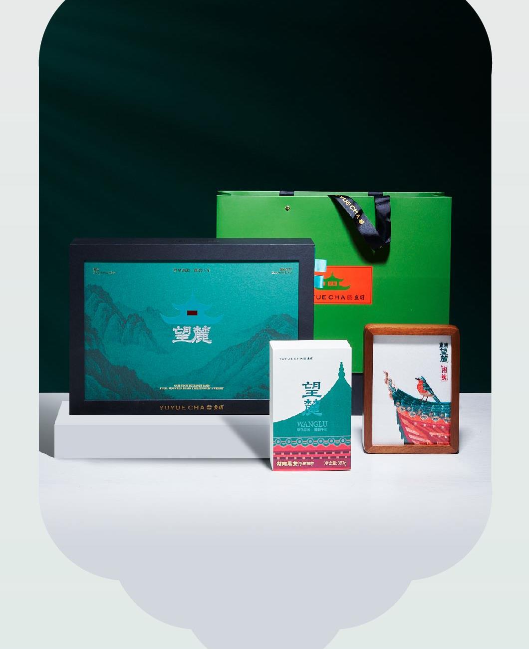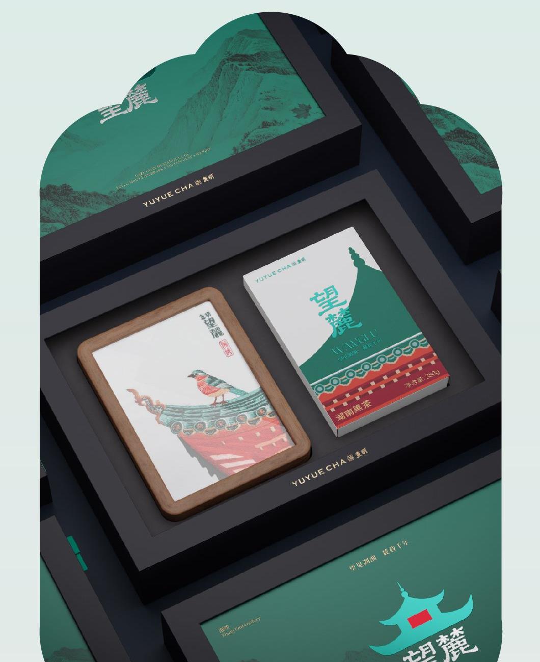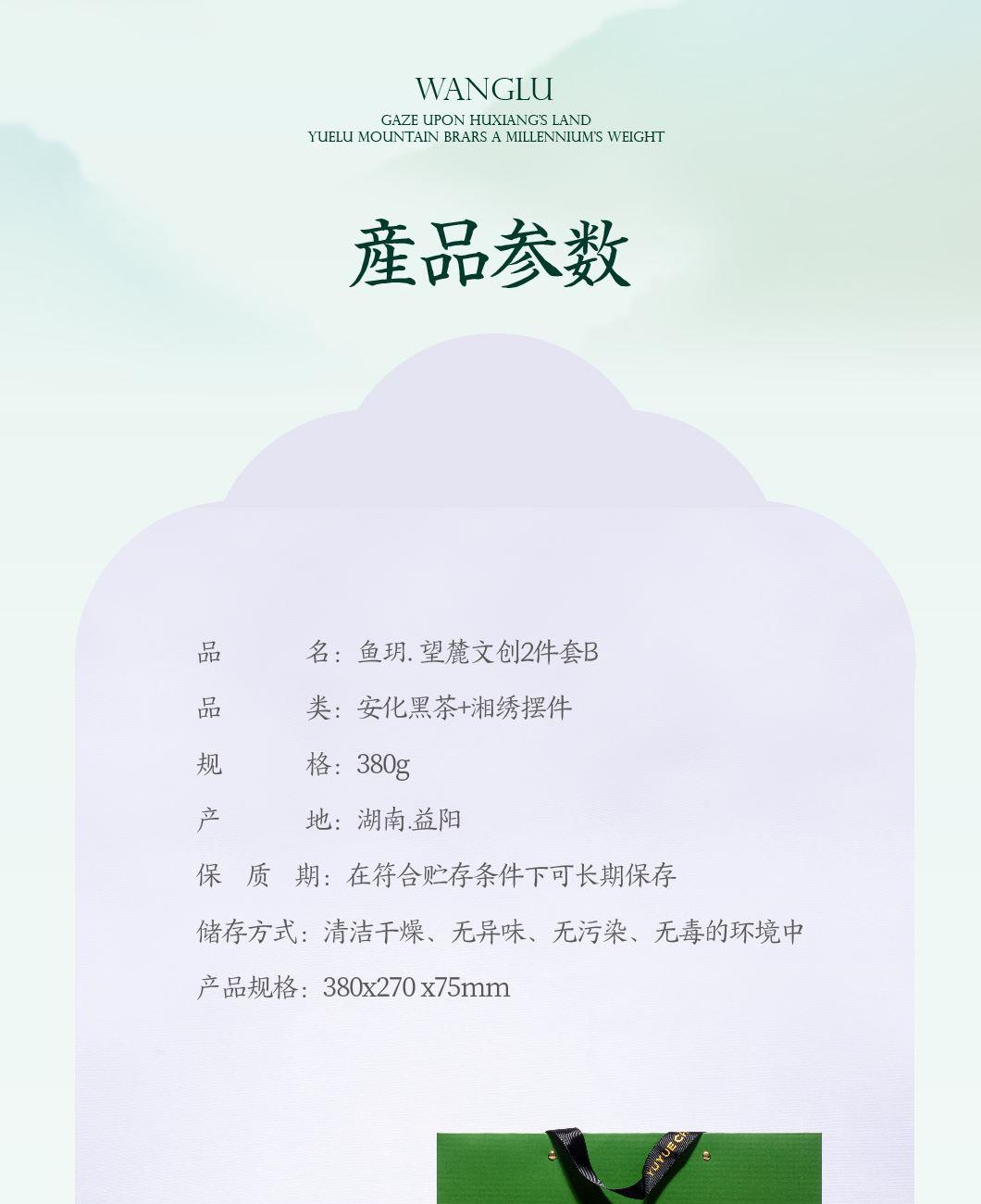 鱼玥望麓非遗文创两件套B款安化黑茶+湘绣摆件组合