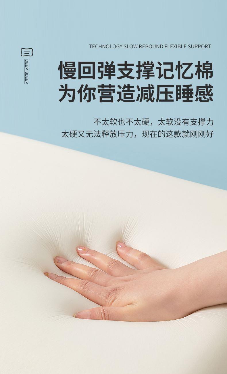 面料:针织棉 规格:42cm*70cm×8cm 填充:聚氨酯 包装:精美提袋 开启'0'压力舒适睡眠 柔软和支撑的平衡,在躺下时给头部和颈部足够的包裹感又有足够的支撑